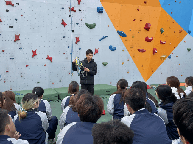 “攀岩”项目无疑是本次课程的高潮部分,它对学生的体力、耐力、协调性以及心理素质都是极大的挑战。高耸的攀岩墙矗立在眼前,教练为学生们仔细讲解攀岩技巧,包括手脚的着力点选择、身体重心的控制。攀岩的重要性不仅在于锻炼身体素质,更在于帮助学生克服恐惧心理,培养坚韧不拔的毅力和勇于挑战自我的精神。