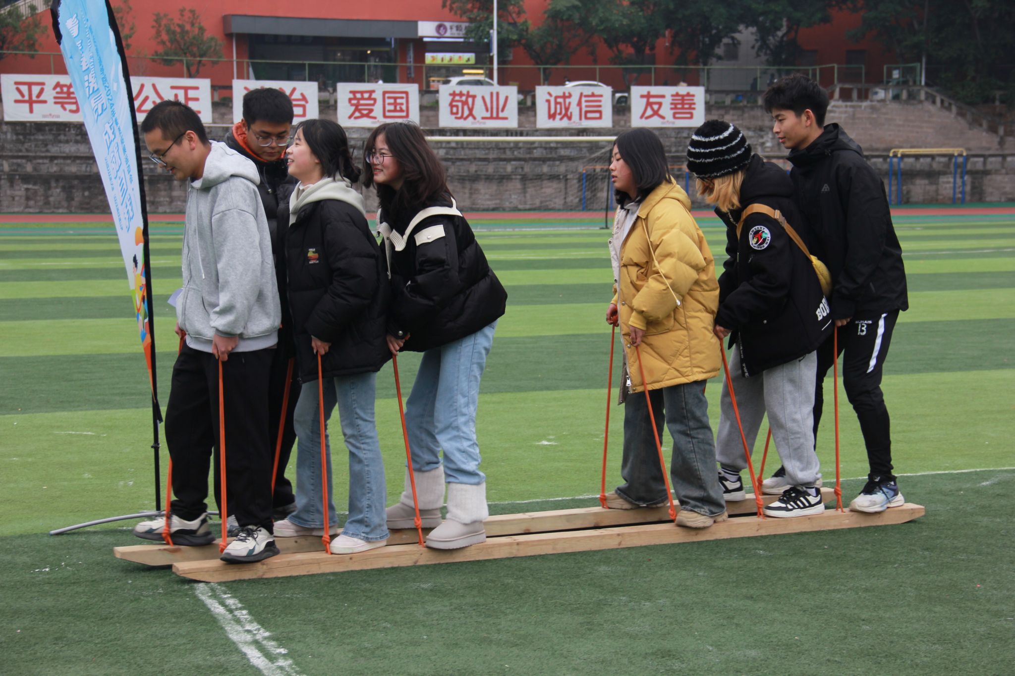 2024年12月13日下午,重庆移通学院田径场洋溢着欢声笑语,一场以“青春激昂,成就自我”为主题的素质拓展运动会在这里热烈举行。