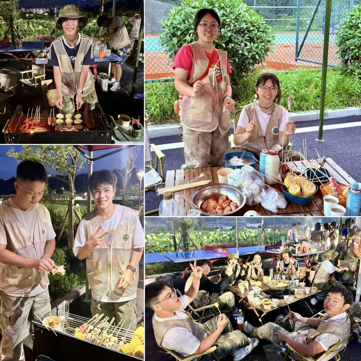 夜幕低垂,各小队围着临时垒起的厨灶,第一次体验自主炊事。笨拙的刀工切出大小不一的土豆块,大铁锅里翻滚着红油沸腾的火锅,烤架上滋滋作响的肉串不时滴落油脂,溅起一簇簇火花。火光跳跃在每个人脸上,也跳跃在掌心的酱料瓶和传递的碗筷间。当第一口裹着浓厚酱汁的烤串、第一筷烫嘴的火锅菜被囫囵咽下,满足的喟叹与欢笑声瞬间盖过了锅碗瓢盆的磕碰。这顿在星空下、由生疏到默契协作完成的烟火盛宴,是独属于训练营学员的青春味道。