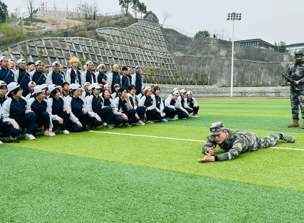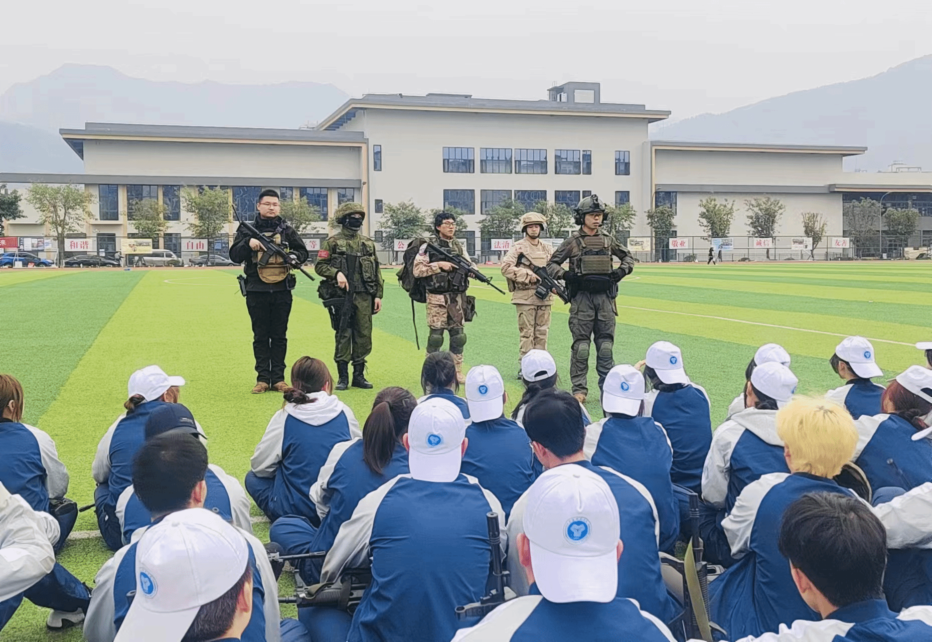 习近平总书记指出“奋斗是青春最亮丽的底色,行动是青年最有效的磨砺。”为了让学生学习国防知识,培育爱国情怀,营地教育中心的张桃老师以及4名优秀退伍军人于2024年3月4日军训期间,在营地教育中心对校国旗护卫队和加强连共107人开展了国防理论知识讲解,为移通学子介绍了常见的军需装备以及他们的精彩经历。