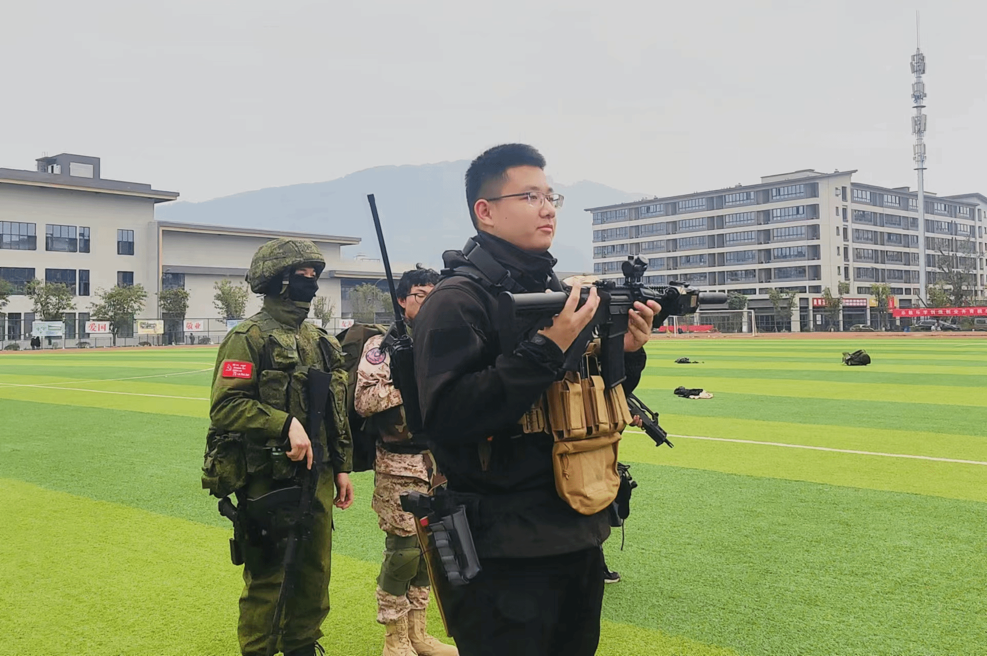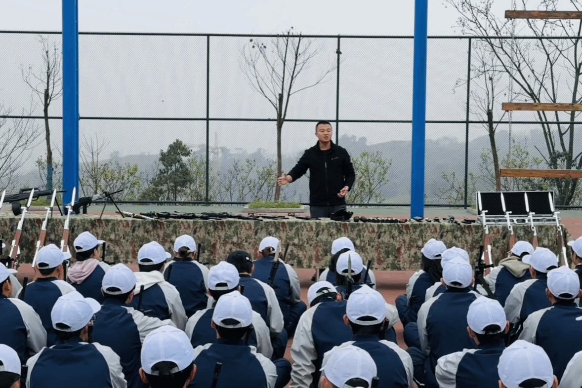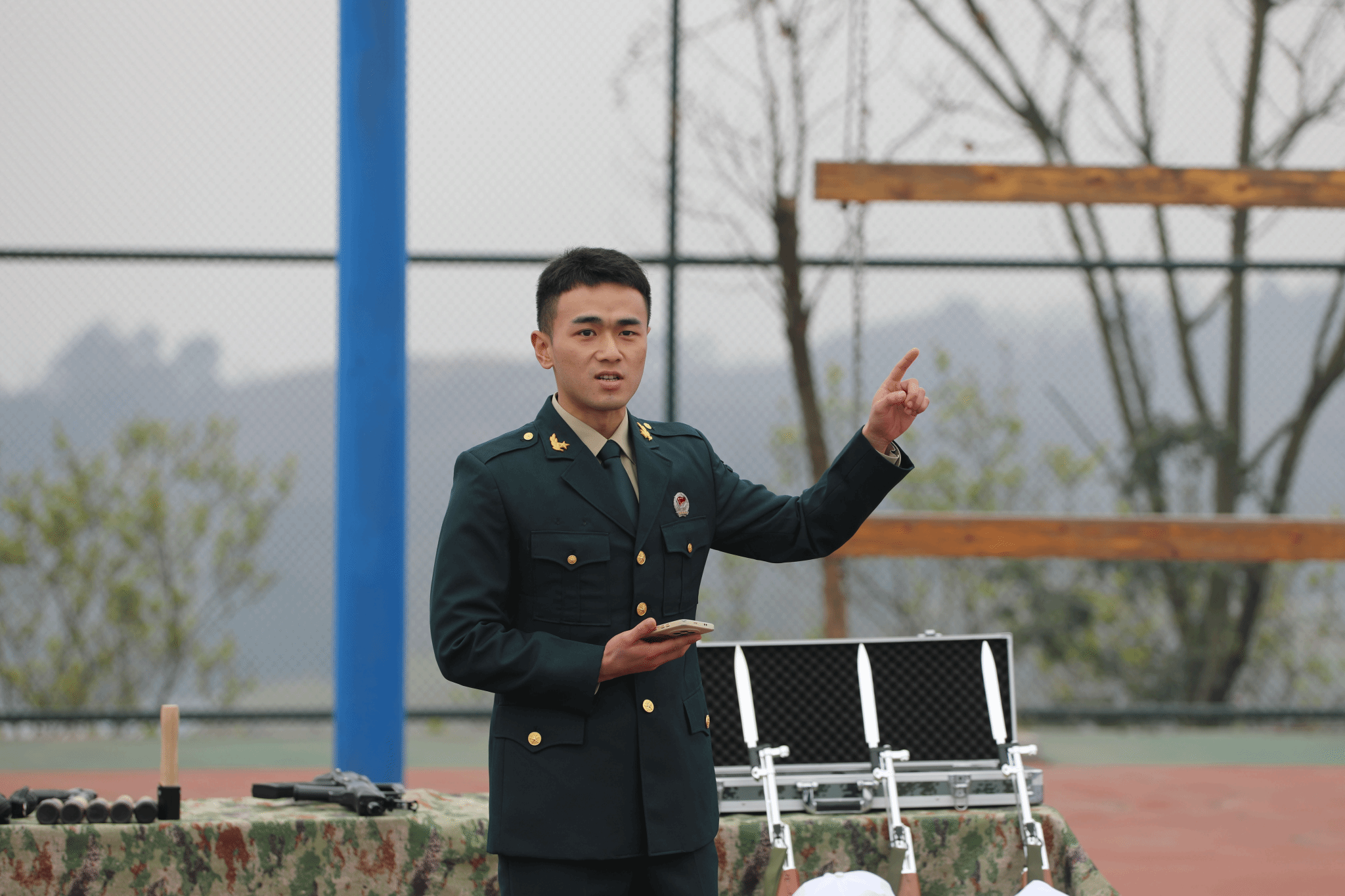 接下来,我们有幸邀请了营地教育中心的张桃老师,他2013年退役于武警四川省总队达州市支队,曾经的铁血战士,现在的户外活动从业者,从事青少年培训,高校拓展教练。张桃老师从自身经历出发,向同学深情讲述了自己如何坚定从军报国志向、怎样从一名地方青年成长为一名合格军人的经历,教育同学们要珍惜当下来之不易的和平环境,刻苦学习专业技能,时刻准备接受祖国的挑选,并号召符合条件的同学踊跃报名参军,切实把自身的爱国之情转化为报国之行,履行好青年的时代责任。并为我们进行枪支弹药介绍以及国防理论知识讲解,其中他讲到“三走户外”挑战赛,要同学们走出宿舍、走向操场、走下网络,多去参与户外活动这样有利于学生们保持身体健康以及心理健康,做有志青年。
