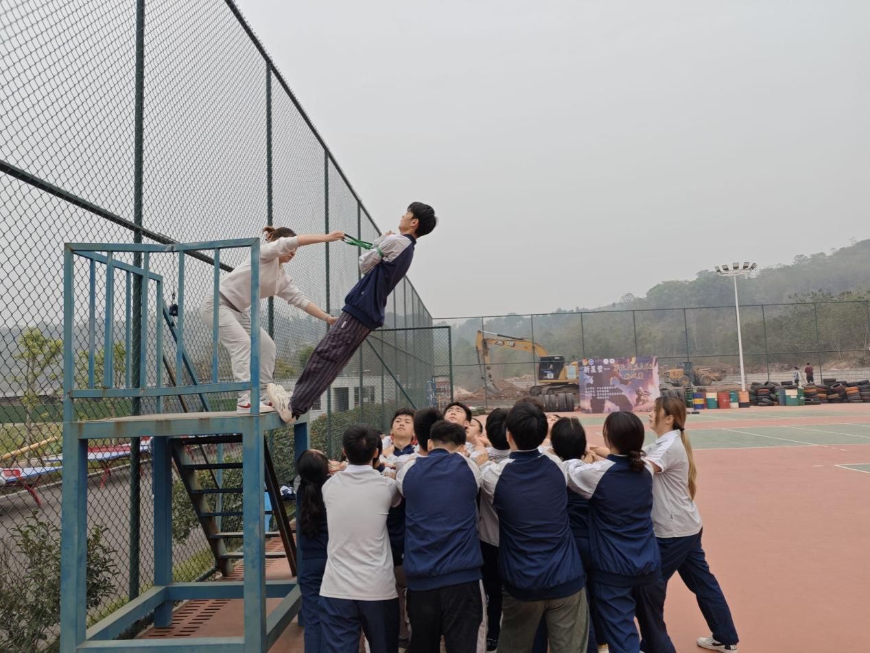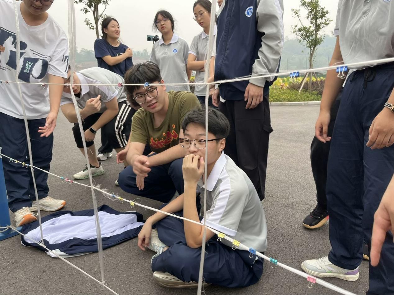 穿越电网项目需要团队的精心策划和协作。电网的孔洞大小各异,同学们需要根据各自的体型默契配合,在不触碰“电网”的情况下全员通过。过程困难重重,既有触网导致失败的可能,又要担心队员体力耗尽。但同学们全力以赴、积极出谋划策,向着同一目标前行。有的同学甘愿当“人梯”,只为让队友顺利通过。此项目淋漓尽致地展现出团队智慧与默契,彰显出无私奉献的团队精神。