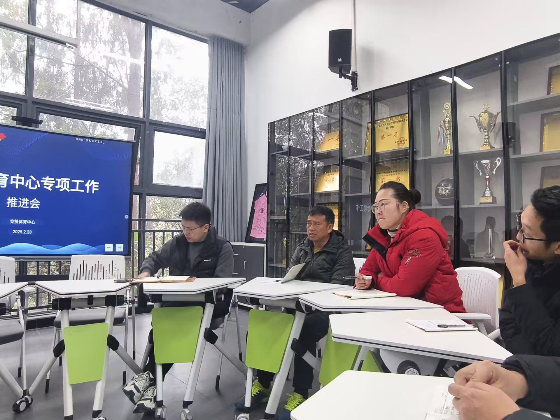 2025年2月28日,重庆移通学院竞技体育中心专项工作推进会在热烈且有序的氛围中顺利举行,为新学期体育工作指明方向,精心谋划,确保各项任务扎实落地。