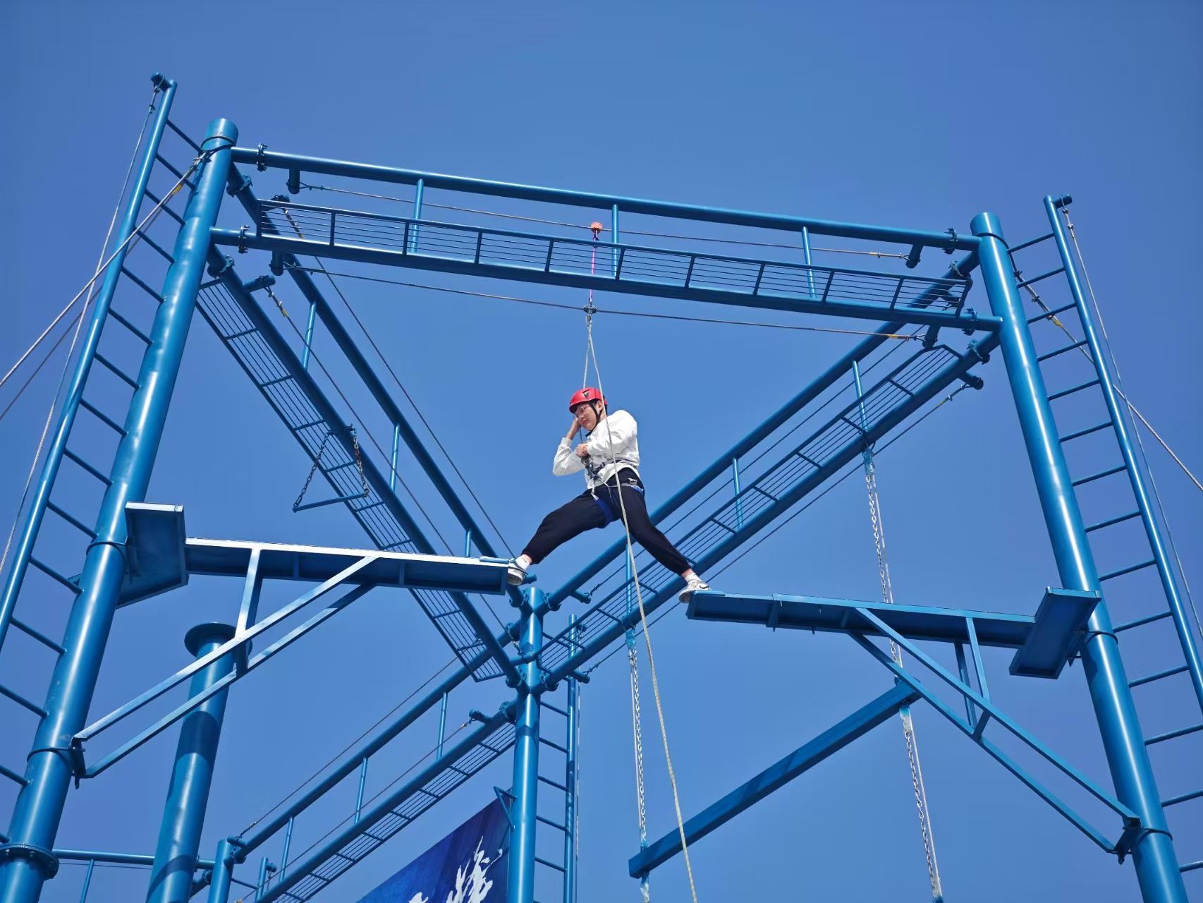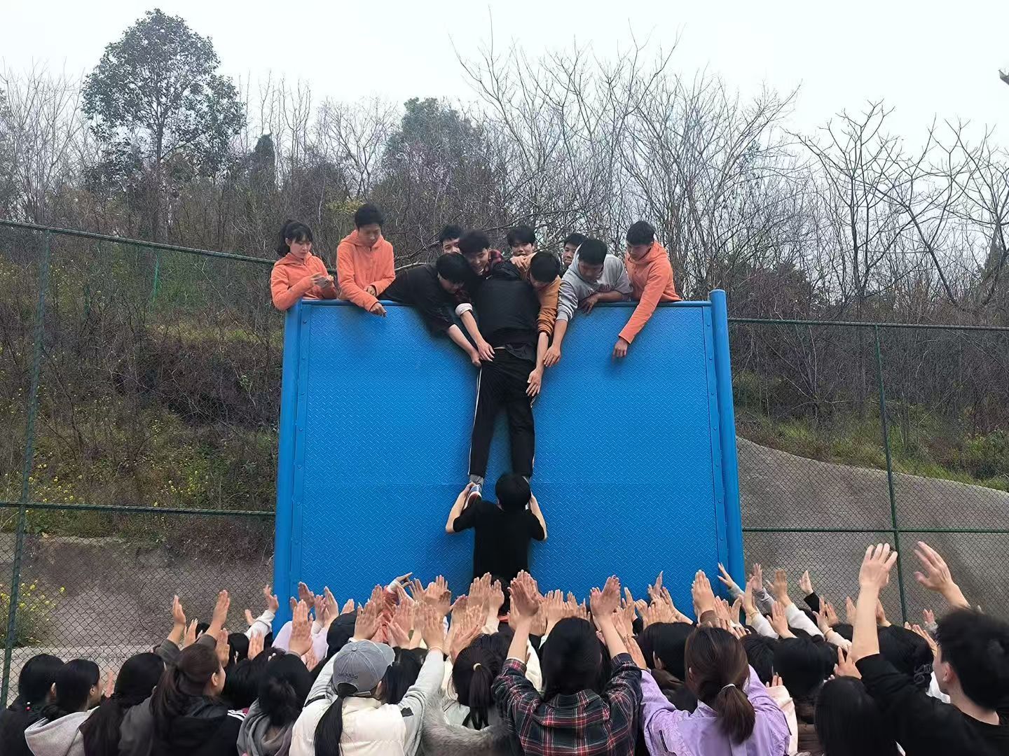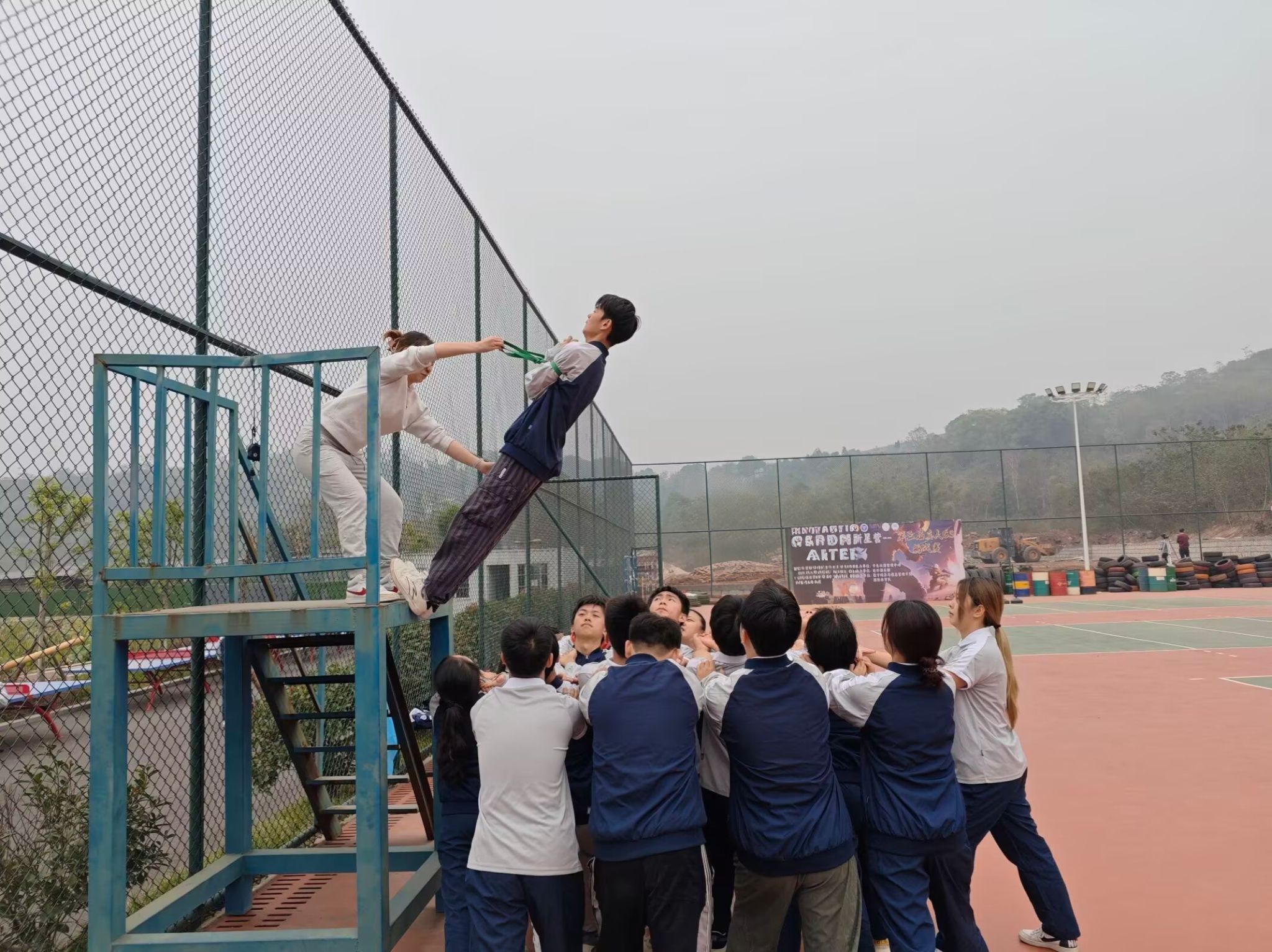 信任背摔台:放弃身体控制权,感受团队信任带来的无限力量与安全感。