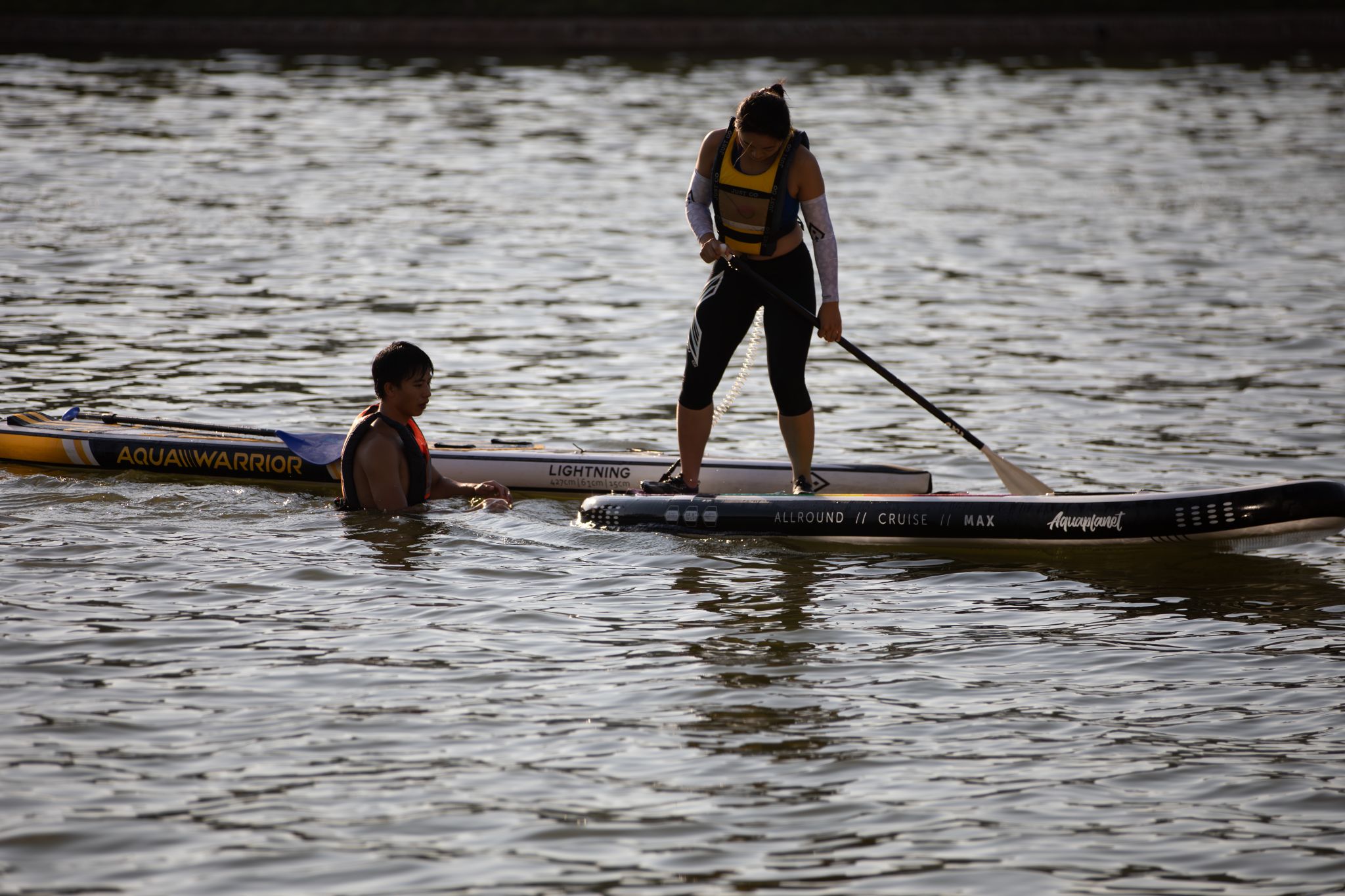 “第一次和队友划浆板横渡子师湖,冰冷的湖水打湿了衣服,却点燃了热血!”