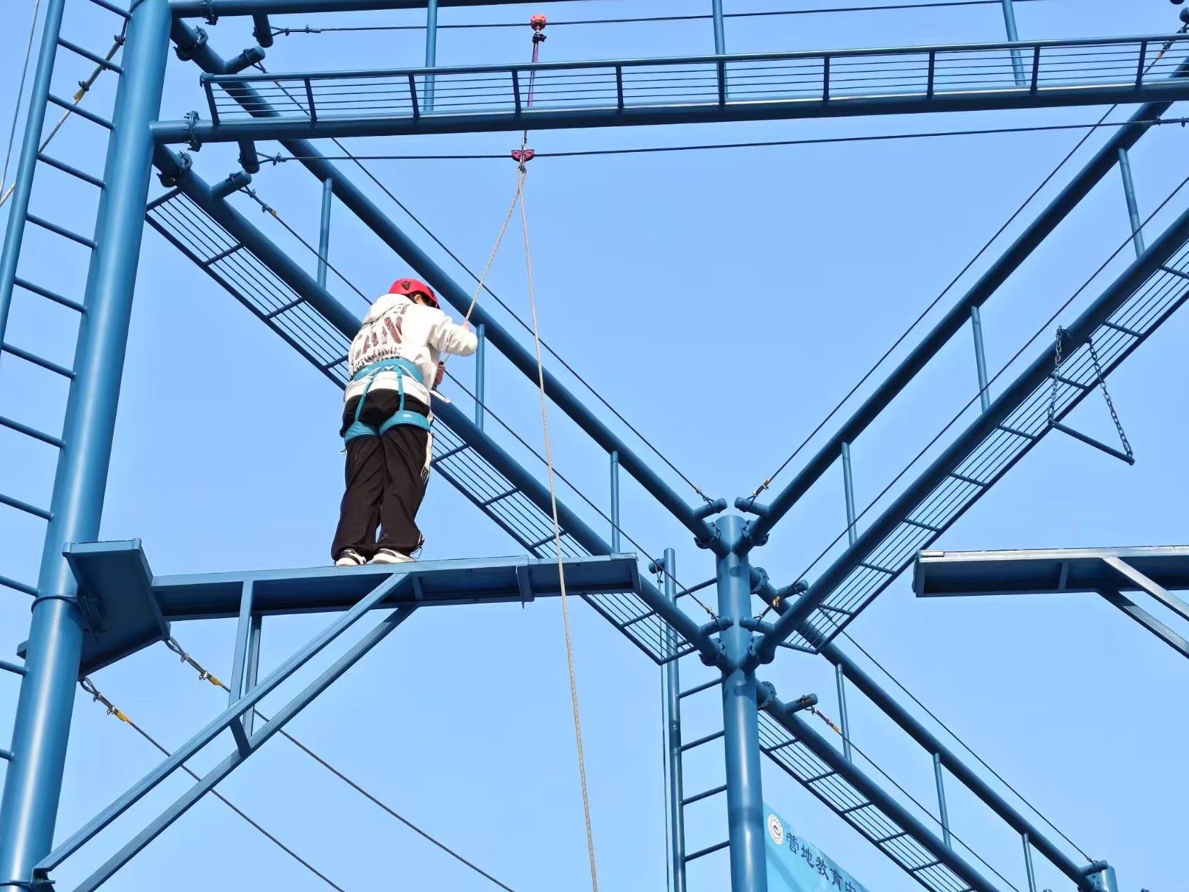 营地教育中心课堂的足迹遍布校园,我们埋下了一颗种子:当学生未来遇到人生险峰时,会想起曾经征服过的那面攀岩墙,跨越过得的那座断桥。有人在这里找回勇气,有人解锁隐藏技能,有人遇见一辈子的战友。移通学院营地教育课程不贩卖成功学,只提供一片允许摔倒、鼓励冒险的热土。