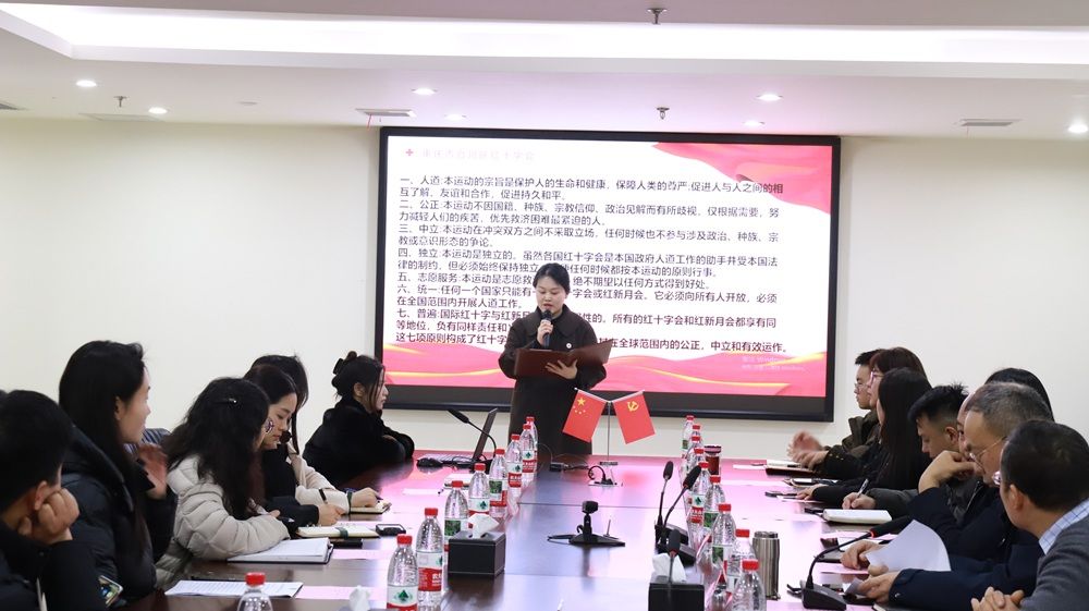 2025年3月5日,重庆市合川区红十字会在区妇幼保健院行政楼6楼会议室召开了“打造明星志愿服务队暨骨干志愿者座谈会”。会议伊始,志愿者宣读“七项基本原则”,随后众人一同观看央视推介的志愿者爱心事迹视频。