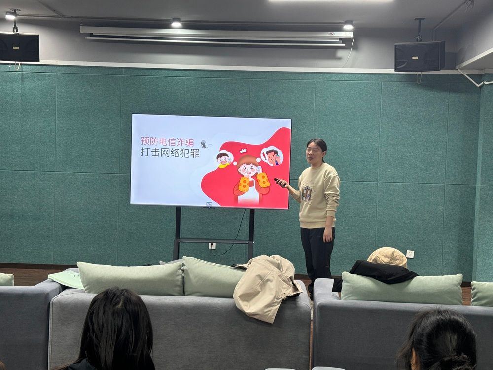 随后,播放教学视频以及训练视频,使队员直观地感受动作细节与技术要领,加深对训练内容的理解,快速提升训练效果。值得一提的是,此次队会还融入防诈骗知识宣传。随着网络发展,诈骗手段层出不穷,学生群体易受侵害。王教练结合常见诈骗案例,如兼职刷单、网络交友等,详细讲解防骗要点,提高队员们的防范意识。