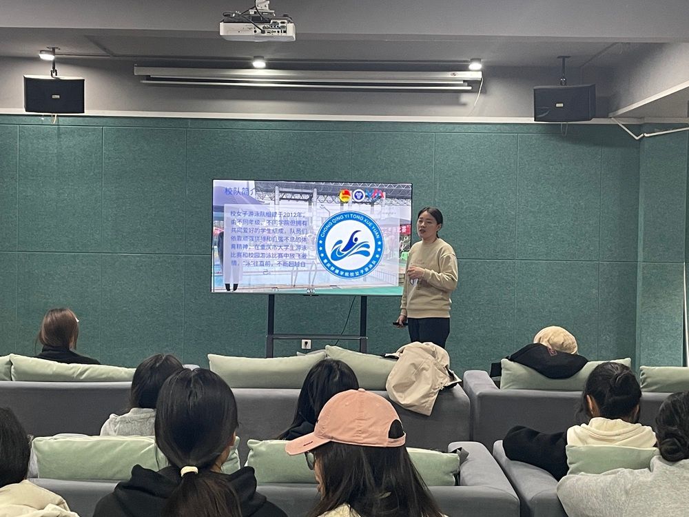 3月21日,校女子游泳队在爱莲书院多功能室召开主题队会,本次队会由王钰涵教练主持,全体校队成员积极参与,旨在增强团队凝聚力,明确训练目标,了解校队各项规章以及宣传防诈骗知识。