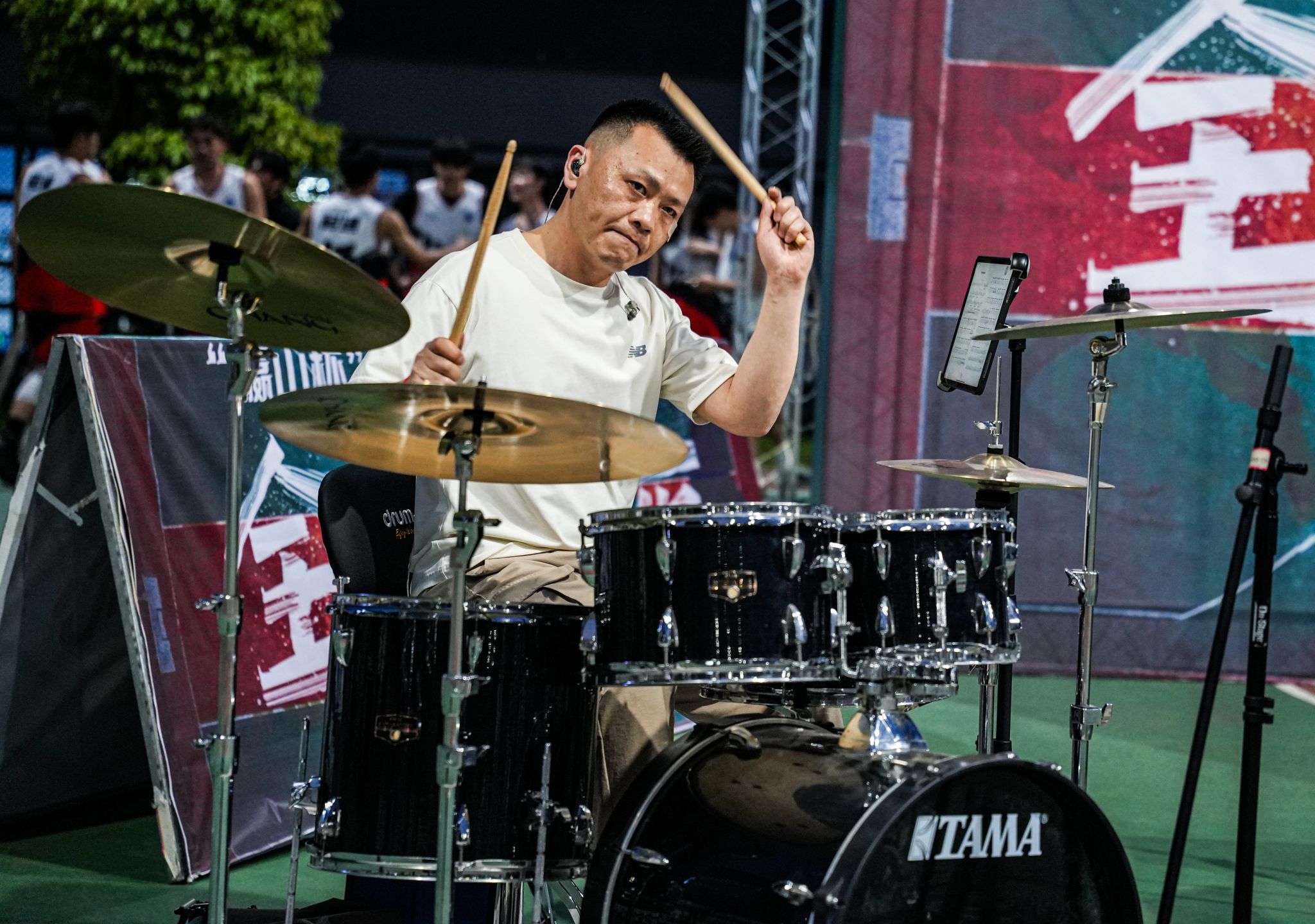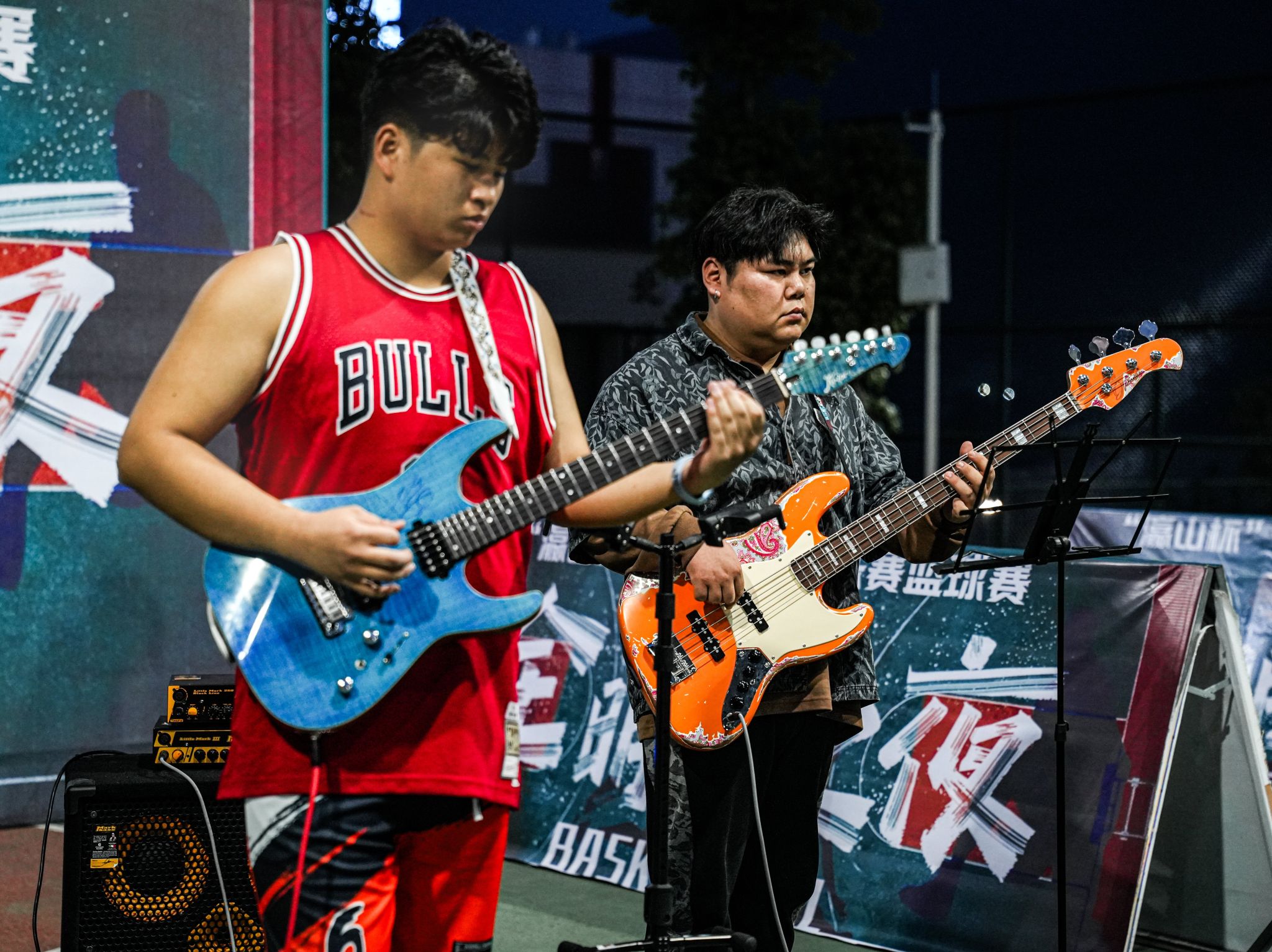 中场时分,我们特别邀请了来自重庆市綦江区的乐队空降现场,为我们带来《好想大声说爱你》掀起音浪风暴。主唱姚伊阳与篮球队员即兴互动,将篮球击地声融入鼓点,打造“运动×音乐”沉浸式舞台。这场表演不仅是视听享受,更是学校“体育+美育”融合育人的创新实践——正如乐队贝斯手所言:“体育的拼搏与音乐的自由,本就是青春的一体两面。”