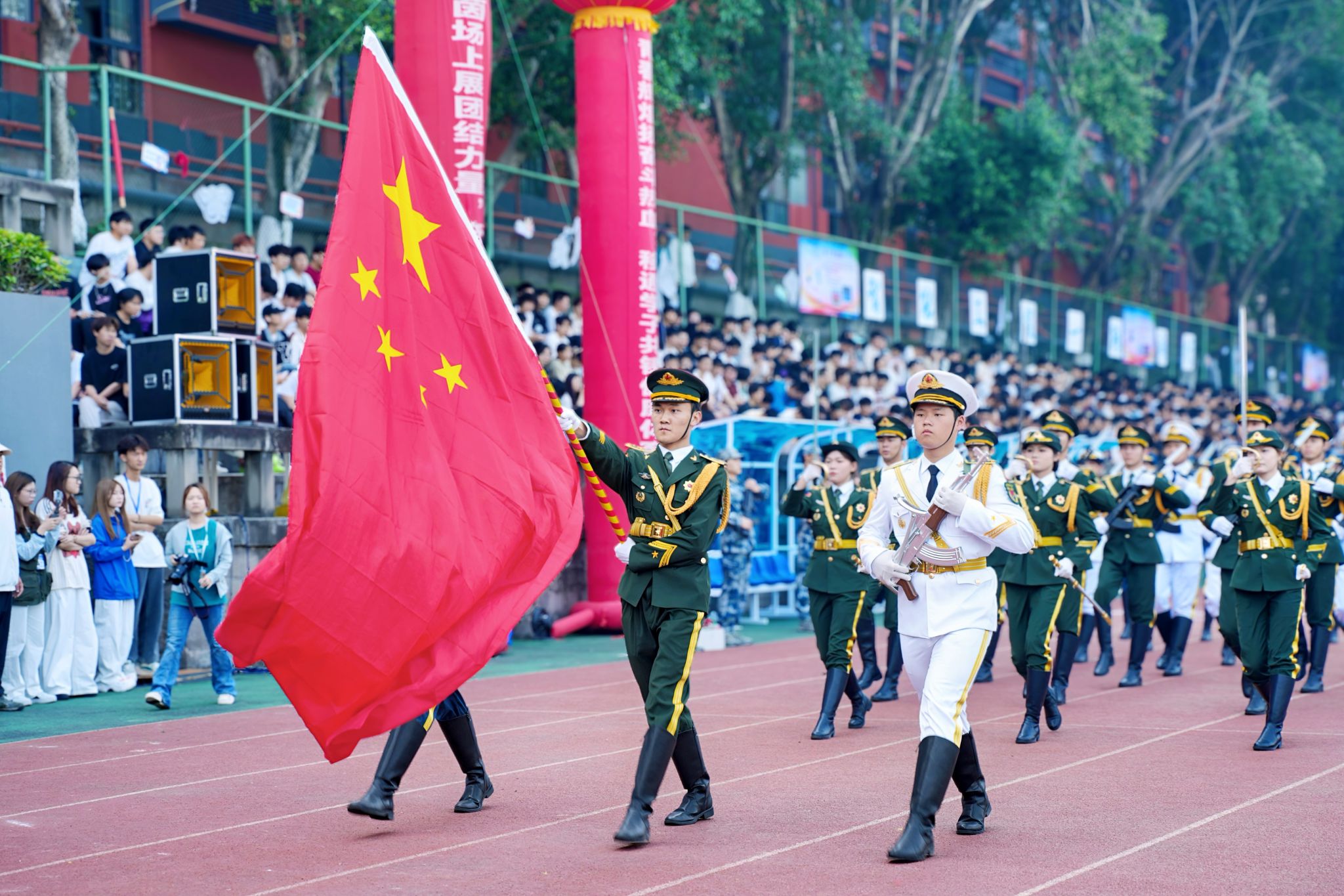 “恰同学少年,风华正茂!”国旗护卫队率先踏着铿锵步伐入场,五星红旗在庄严的国歌声中冉冉升起,全体师生肃立行注目礼,热血与信念在此刻交织。