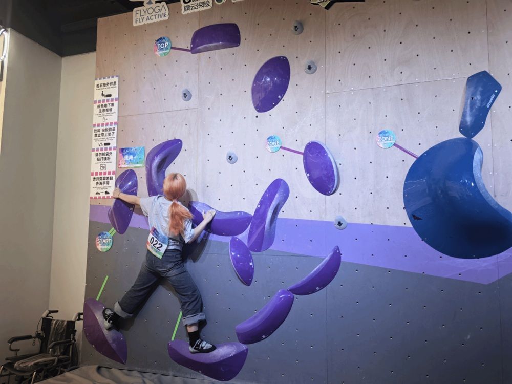 比赛中,郑星宇面对多条技术型抱石线路,展现出超乎新人的沉稳与专业。在最具挑战性的挑战赛线路上,他通过精准的脚法和稳定的核心控制,连续完成多个高难度动作,其干净利落的攀爬风格和沉着冷静的临场表现,赢得现场观众阵阵掌声。