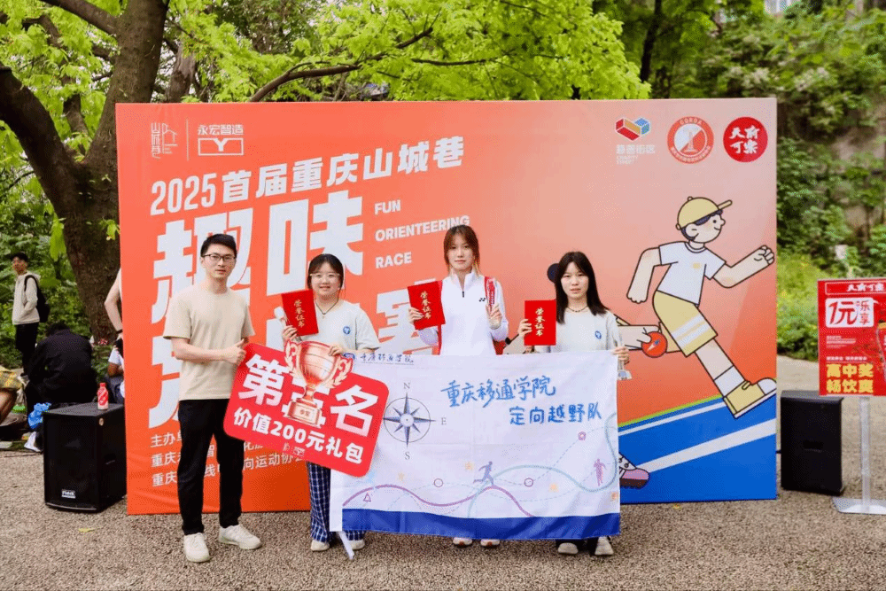 参加此次重庆山城巷定向赛对重庆移通学院定向越野队而言是一次特别的体验和机会,特别是对新队员来说是一次锻炼自我积累宝贵经验的机会,随着夕阳的余晖洒满山城巷的吊脚楼,移通学院定向越野队的队员们带着奖杯与回忆踏上归途。这场赛事不仅为他们留下了青春的勋章,更让“定向”二字在非遗与现代中交织。正如山城巷入口处的标语所言:“每一步,都是历史的回响;每一程,都是未来的序章。”移通学院定向越野队将不断努力提升,刻苦训练,未来,让我们一起感受定向的魅力!