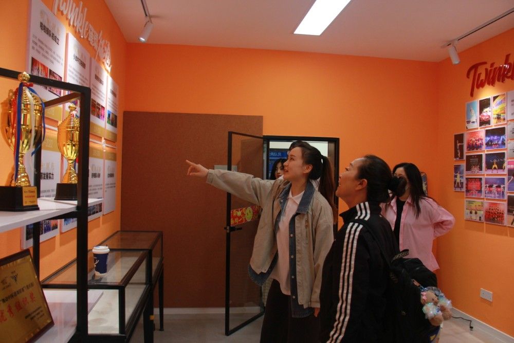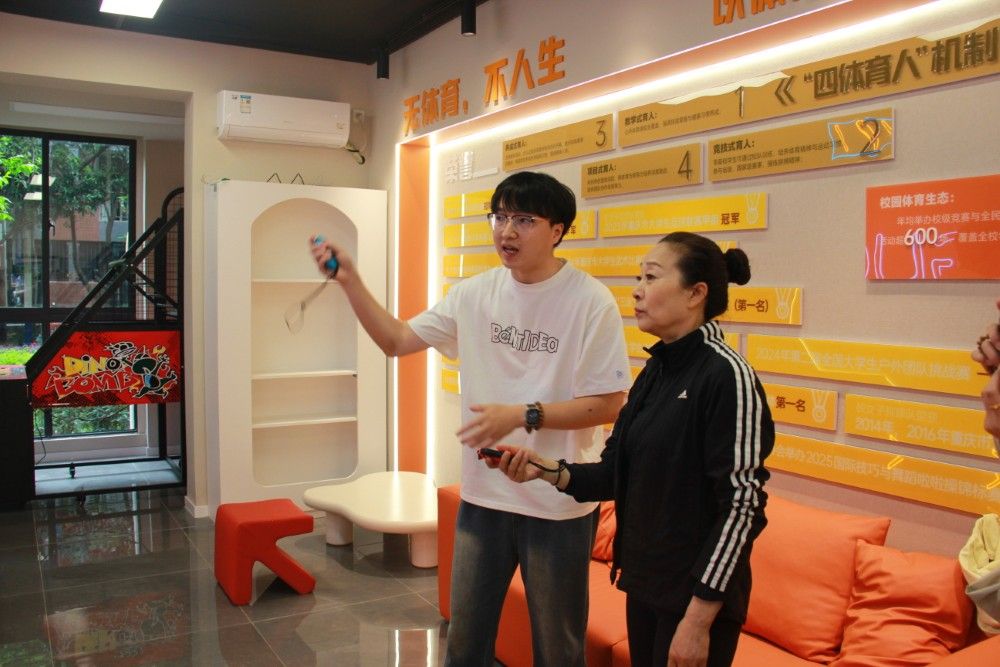座谈会后,杨玉茹老师与王尚傲老师及对外经贸学院两位老师移步花果书院四号楼的体育文化功能室。谭老师热情引导,介绍花果书院功能室,书院独特的设计与多元功能,为校园文化与体育发展融合提供新思考。