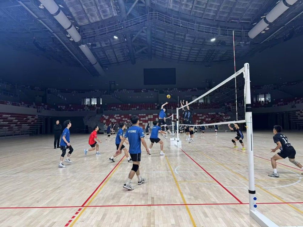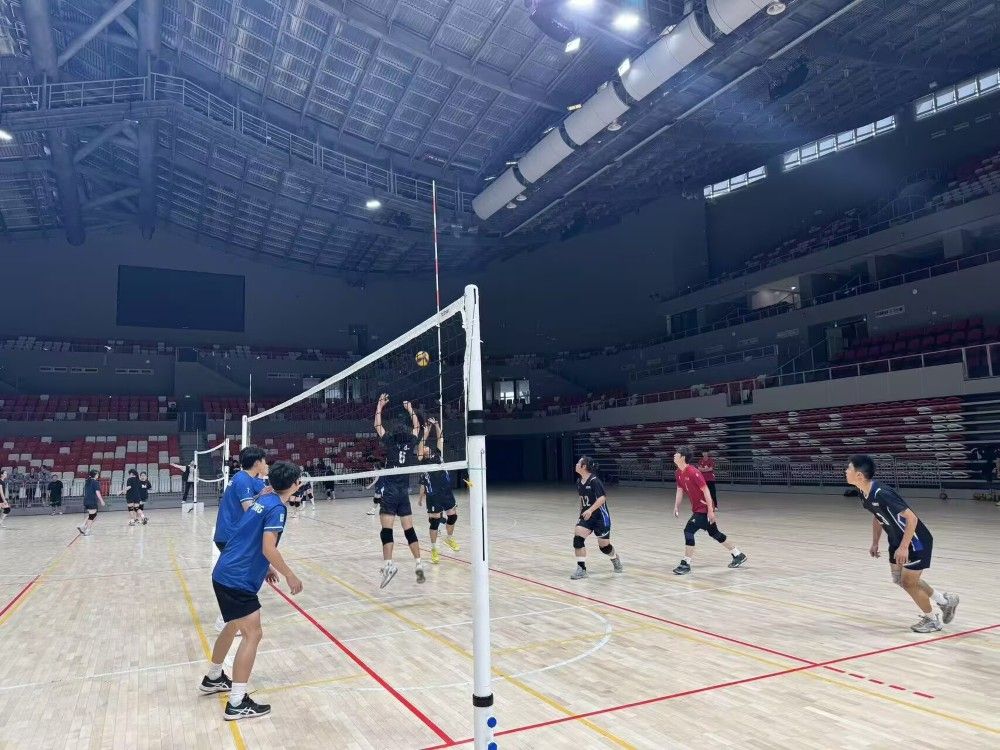 双方队员在场上的每一次跳跃、每一次击球都饱含着对胜利的渴望,充分展现出移通学子积极向上、团结协作的体育精神。赛场边虽没有过多观众,但队员们的专注与拼搏,让整个场馆都弥漫着紧张而激动的气息。