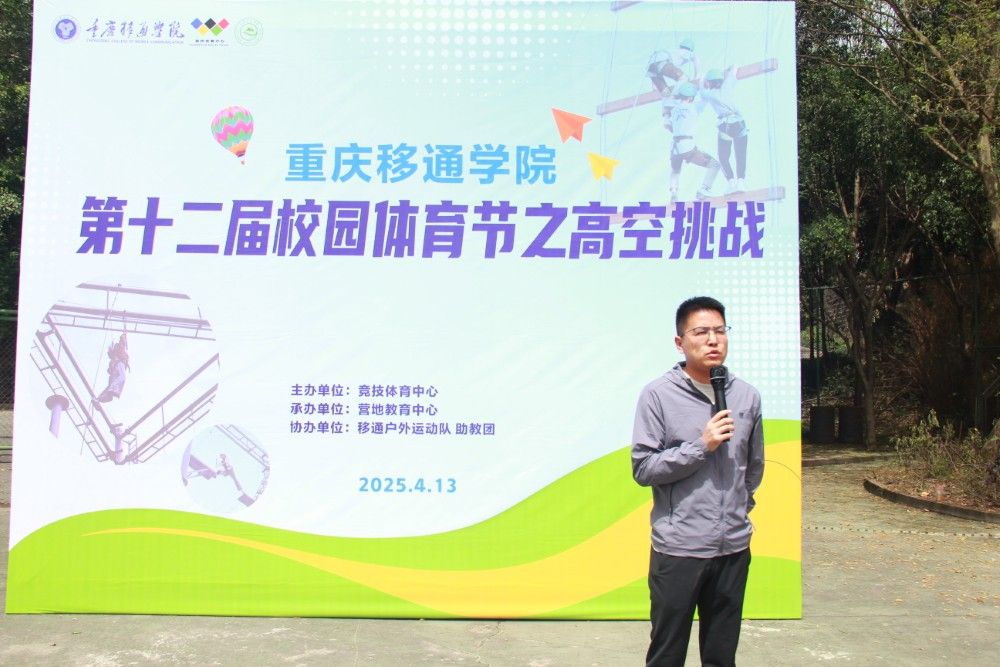 2025年4月13日下午两点,重庆移通学院北校区素质拓展基地热闹非凡,重庆移通学院第十二届校园体育节之高空挑战活动在此盛大开幕,吸引了全校众多学生踊跃参与。此次活动由学校竞技体育中心·营地教育中心精心策划,旨在为学生提供挑战自我、展示勇气的平台,同时推广高空运动,丰富校园体育文化生活。