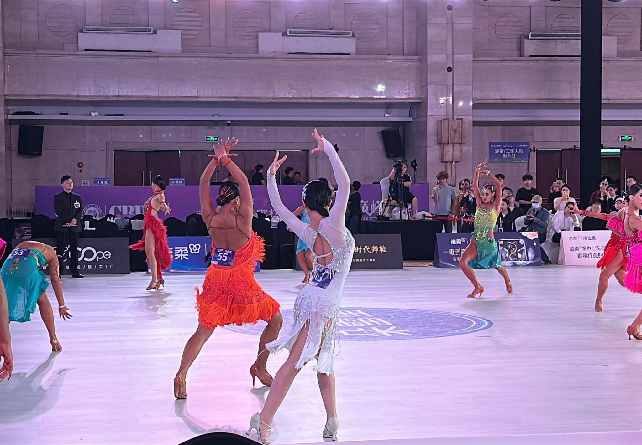 华雨同学以雷霆之势点燃赛场,利落的切步如刀锋划破空气,髋部摆动精准卡点音乐节拍,以教科书级的"时间步"征服裁判,强势问鼎高校组单人恰恰冠军;在伦巴诗篇的缠绵旋律中,她化身浪漫叙事者,通过波浪手臂与延展体态,将伦巴的缱绻深情演绎出戏剧张力,再度折桂。