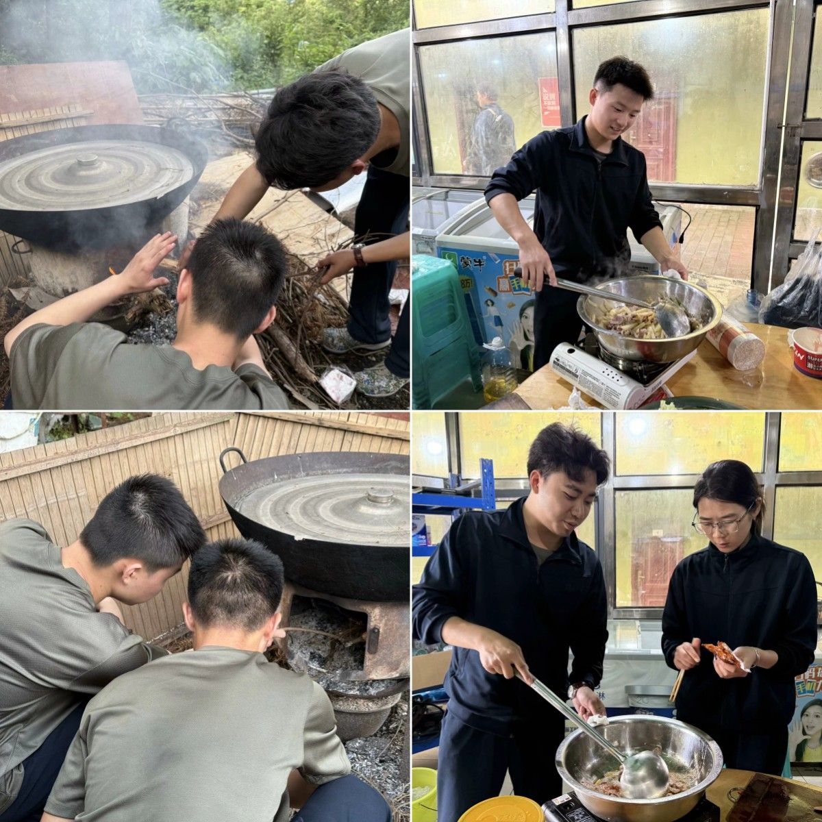 “埋锅造饭不是过家家,你们的时间只有1小时,否则今天就只能饿肚子!”当教练掀开伪装网,露出散落的野战炊具时,学员们才意识到考验的真正开始。没有天然气的嗡鸣,没有手机中的外卖软件,只有几块火石、一捆枯枝与一些未处理的菜品。此刻,计算机专业学霸们画的物资分配思维导图,在呛人浓烟中碎成灰烬。