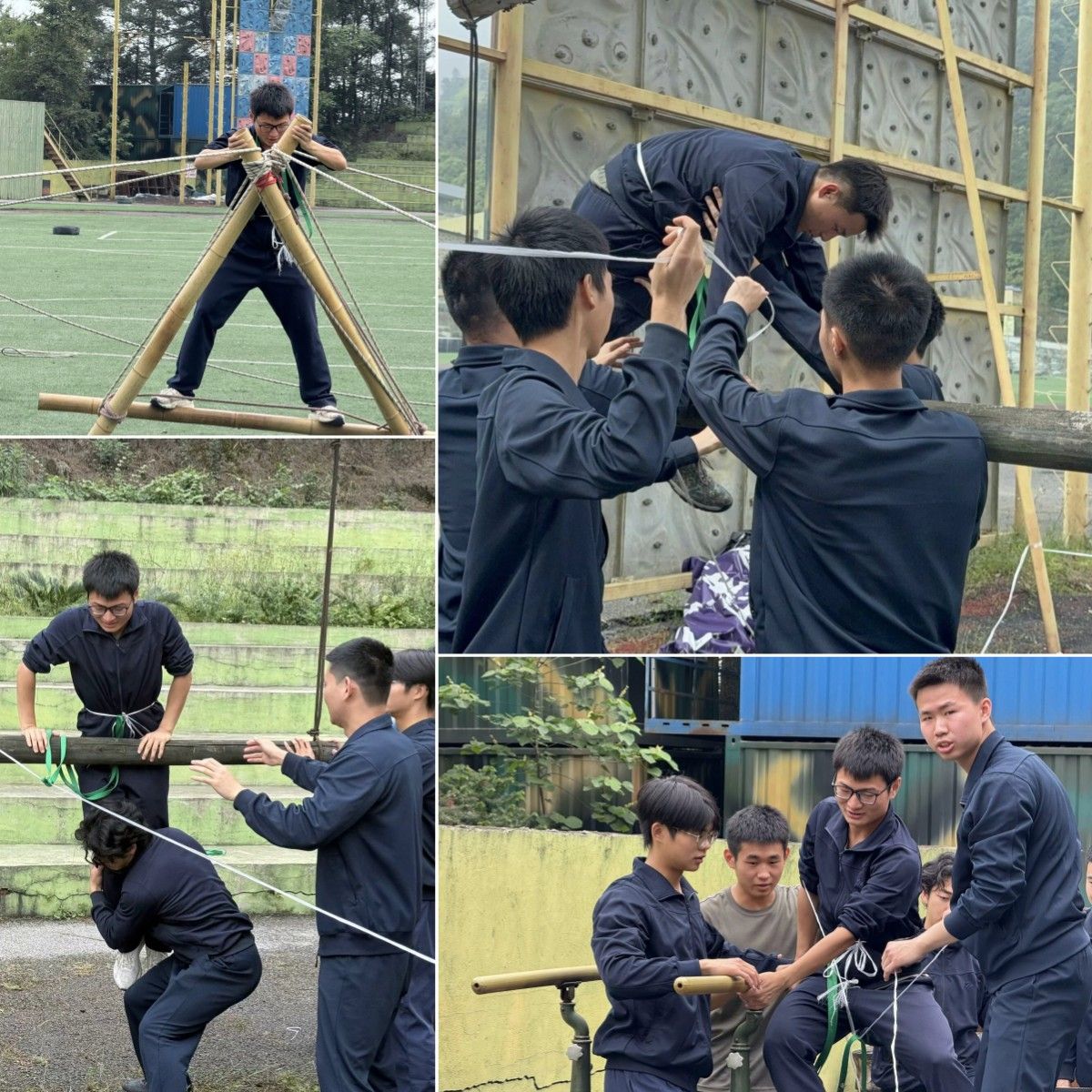 最震撼的场景出现在"团队营救"环节。学员们群策群力,制作战车穿越封锁营救队友。当“人质”队友被交错的尼龙绳困成“茧”时,队伍中出现了指挥者的声音:“杰明,你身高最高,负责前方理绳;能鑫,你柔韧性好,从底部穿插。”当终于成功通过所有关卡时,有人磨破了手掌,有人扭伤了脚踝,却没有一个人喊停。