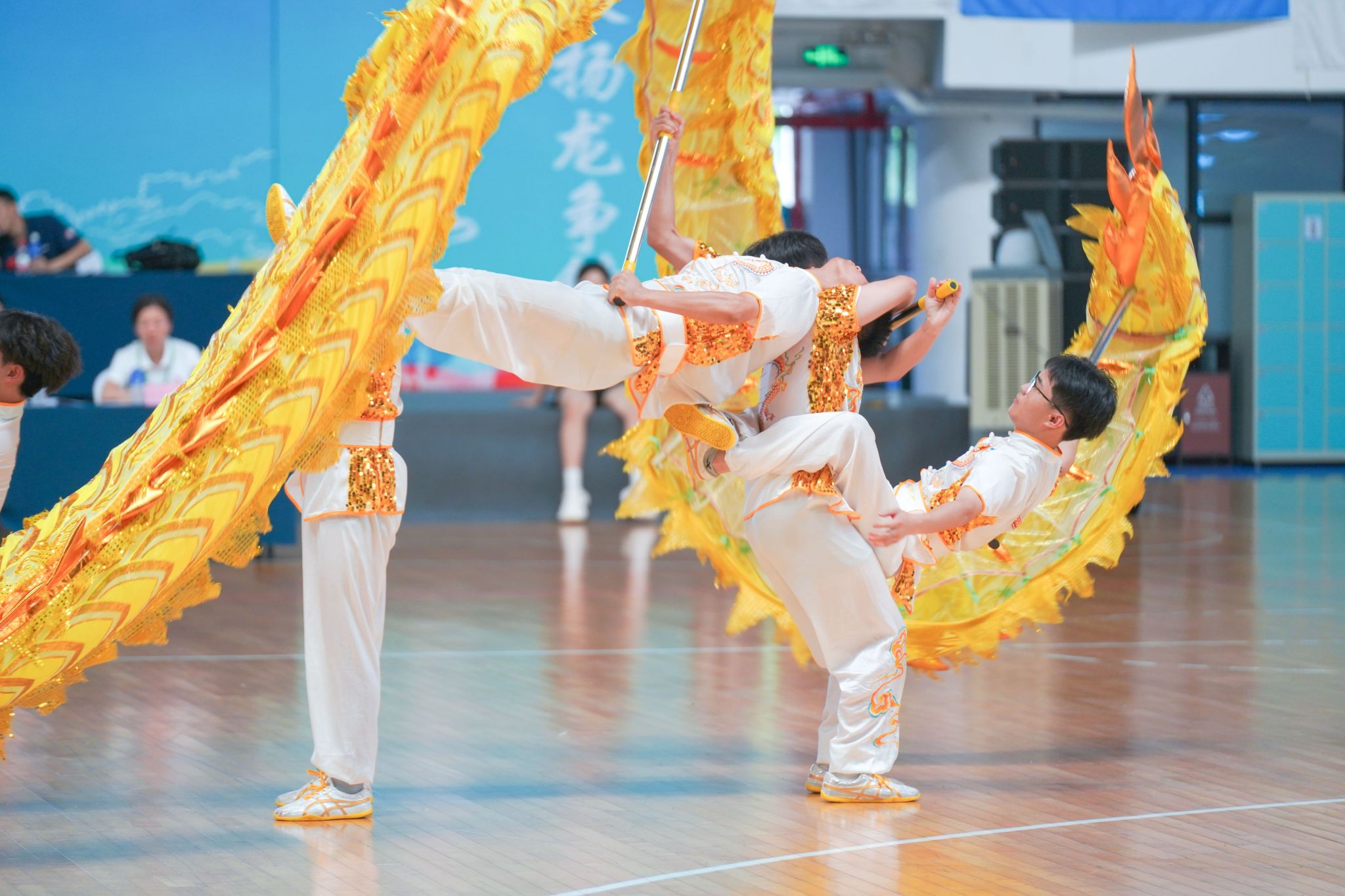 在比赛过程中,队员们将平日训练的成果完美展现。在甲组男子舞龙规定套路比赛中,他们动作整齐划一,巨龙在他们的舞动下时而蜿蜒游走,时而昂首摆尾,精准地完成了每一个规定动作,赢得了现场观众的阵阵掌声;在甲组男子舞龙自选套路环节,队员们大胆创新,融入了独特的创意和精彩的表演元素,以出色的发挥打动了评委,最终获得优异成绩。