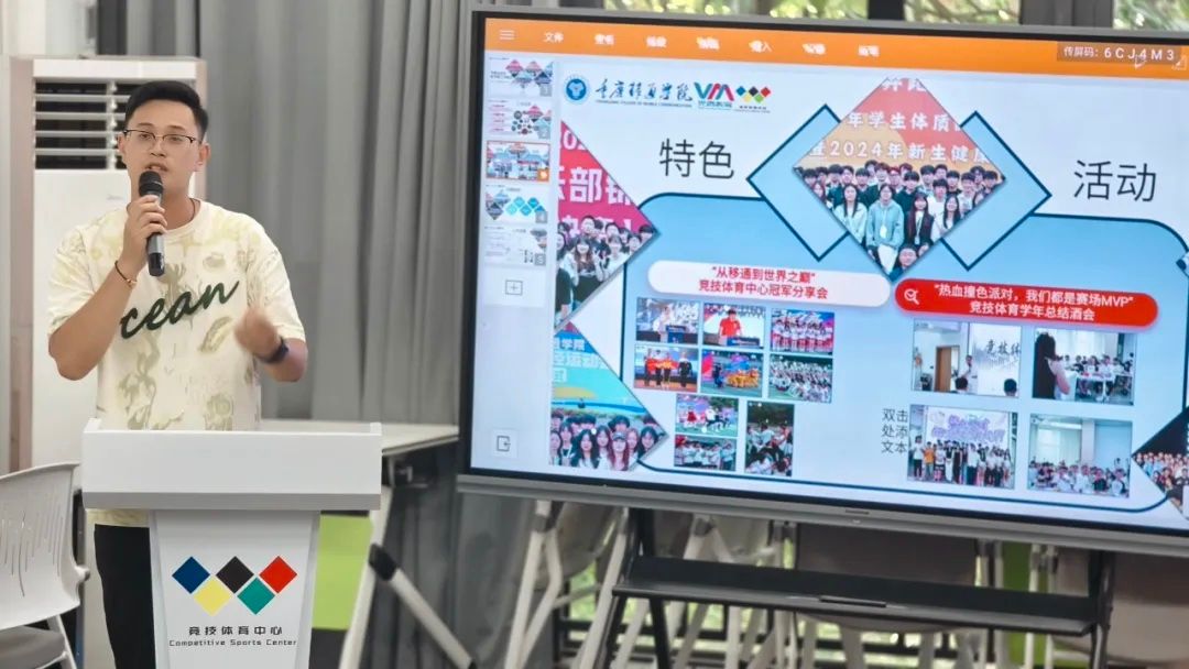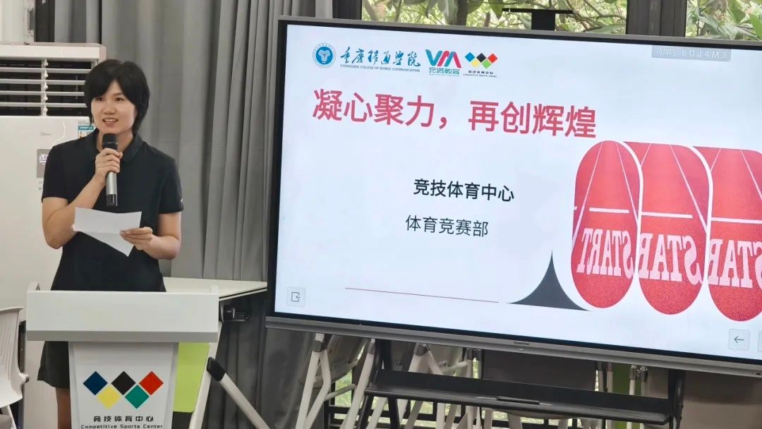 体育竞赛部主任颜文娟从赛事成绩、团队建设方面进行汇报。赛事成绩方面,多支校体育代表队亮相国际赛、省赛、国赛,荣获团体、个人奖项50余项。其中,啦啦操队获国际技巧与舞蹈啦啦操锦标赛两项冠军,男子足球教练江晓羽代表国家参赛获亚洲第四,校男子足球队首获重庆市大学生足球比赛冠军,显著提升学校竞技体育声誉。团队建设方面,建立教练员评优与监督制度,组织团建与外出学习,增强团队凝聚力。新学期体育竞赛部积极响应学校号召,择优推荐7名教练参与公共体育课教学,后续将持续开展“体育大咖进校园”、体质提升训练营、校队开放日等活动,提升活动质量,推动基层体育发展。