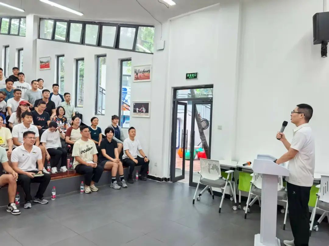 营地教育中心主任助理程光涛重点汇报教学与竞技成绩。拓展训练与淬炼领导力课程分别开展25期和36期,覆盖学生近4000人。部门成功入选教育部“全国学校急救教育试点学校”。校队建设成绩显著,攀岩、飞盘、定向、舟艇等队伍在多项全国及省市级赛事中取得历史性突破。品牌活动如巨人梯挑战赛、攀树比赛及体育文化讲堂广受校内外好评。部门教练积极参与行业论坛与赛事观摩,持续提升专业能力。
