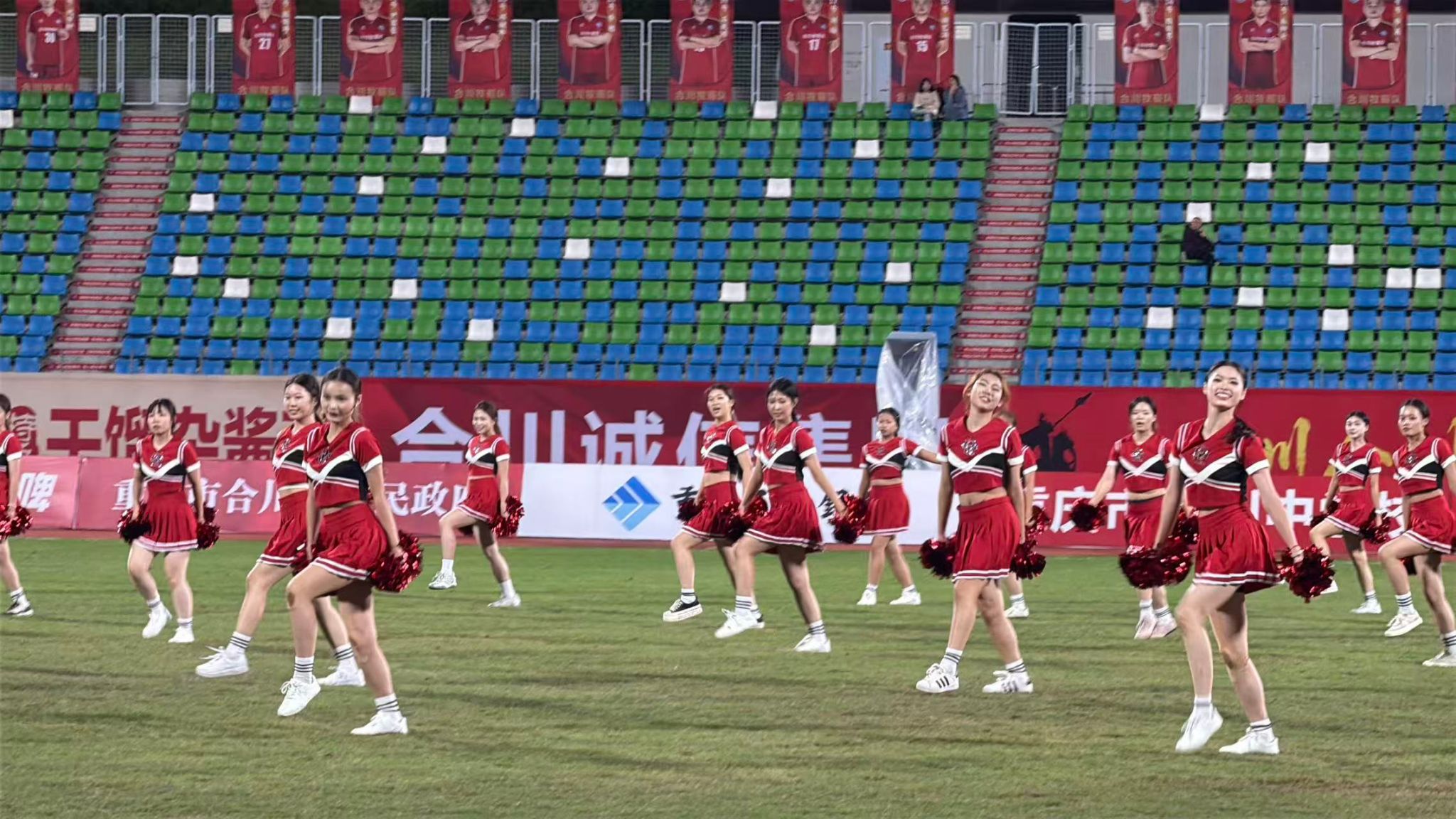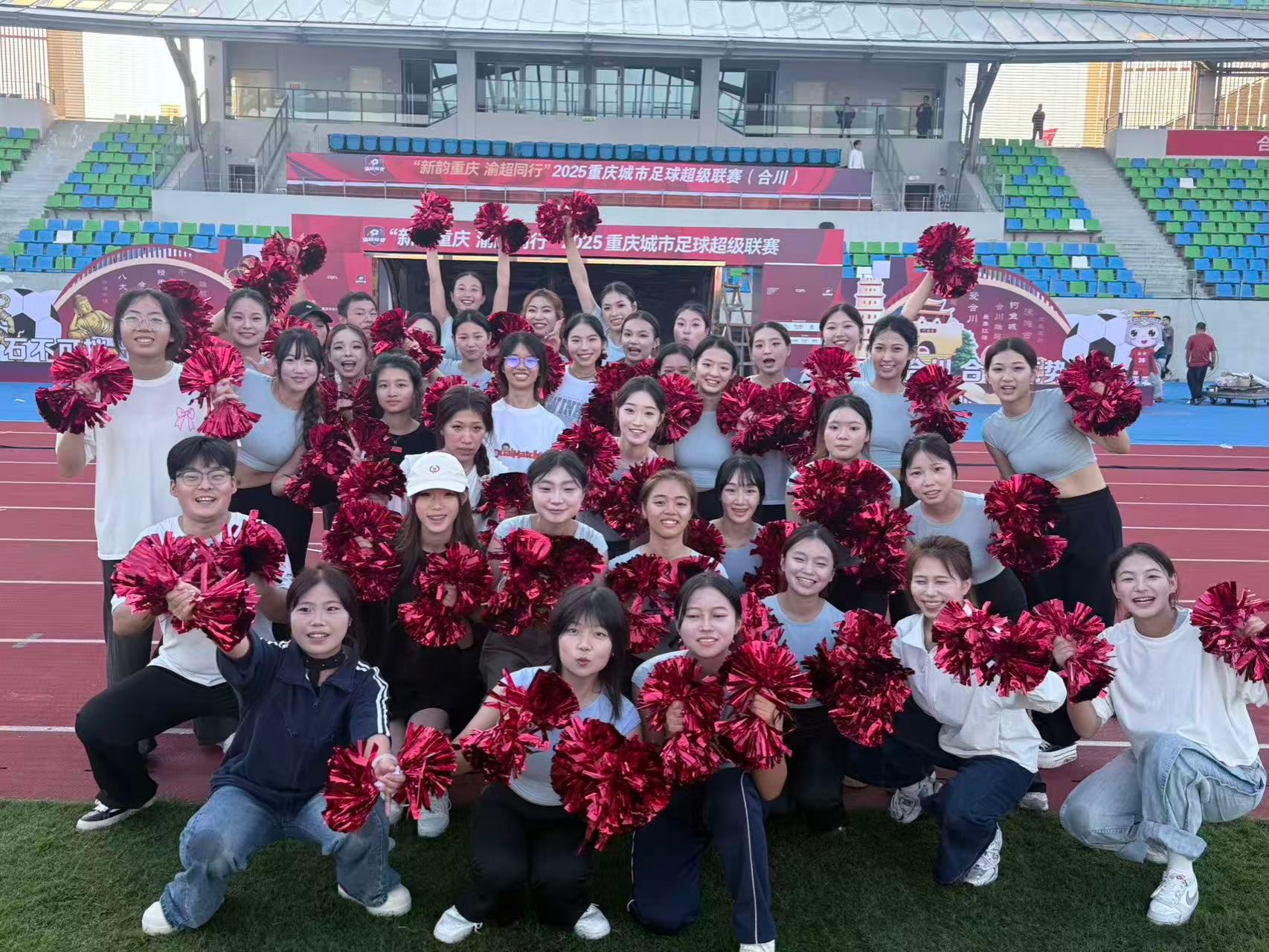 2025年10月18日晚上20:15,“渝超”在合川体育馆中心顺利开展,重庆移通学院校啦啦操队接过“热场接力棒”,为绿茵盛宴注入别样激情!