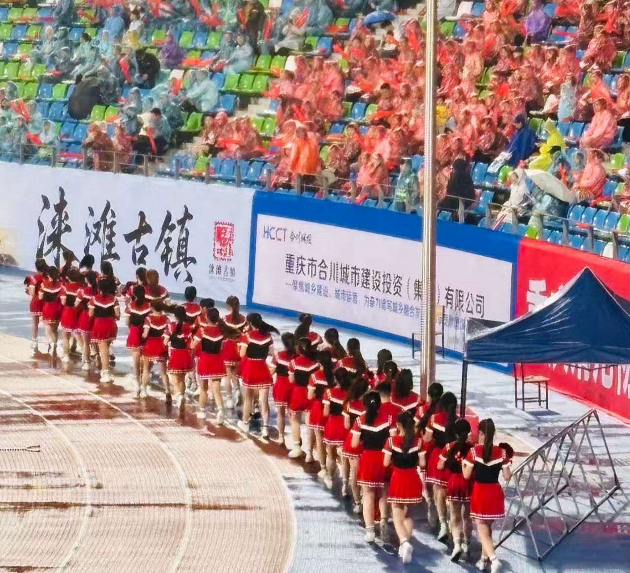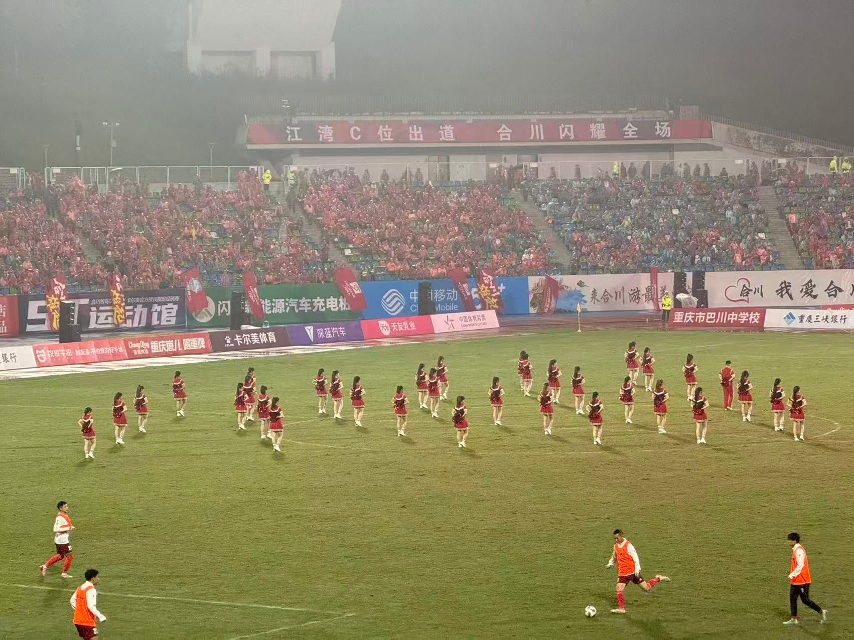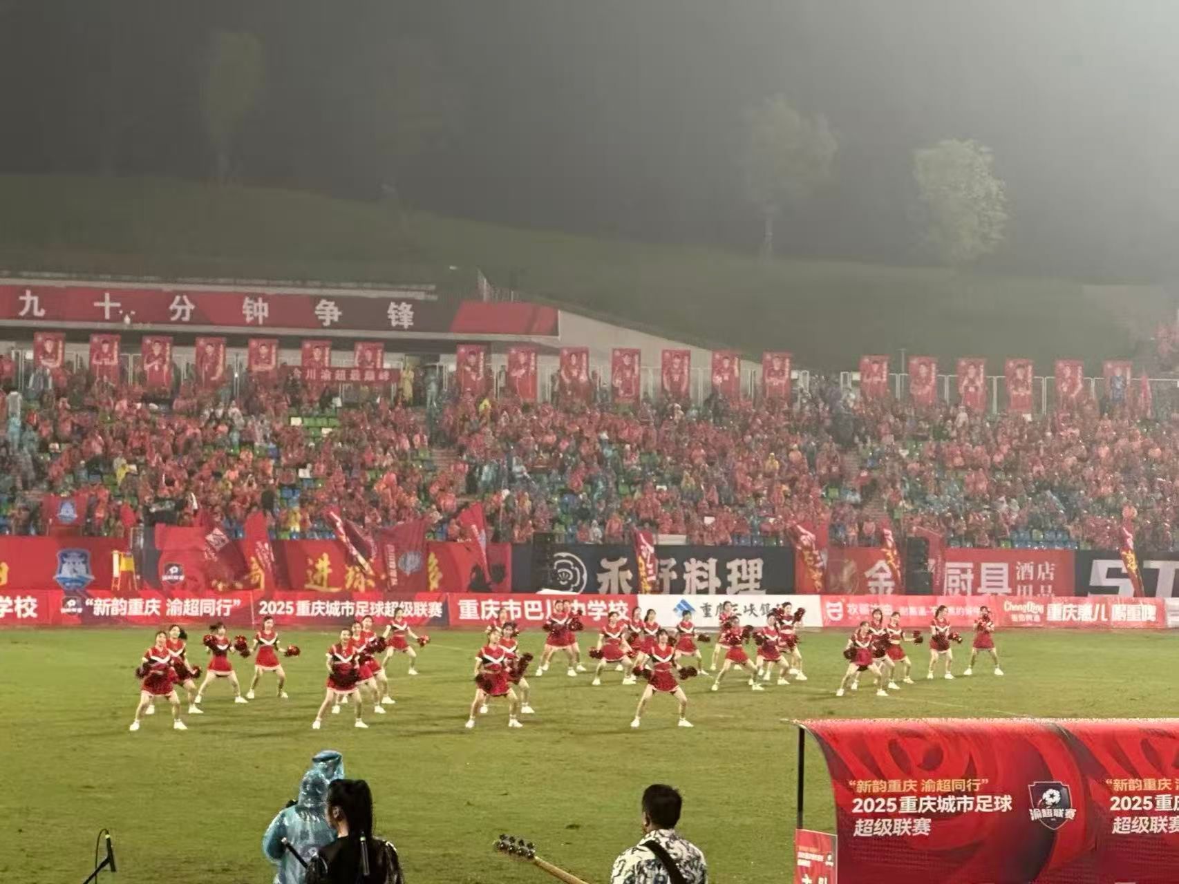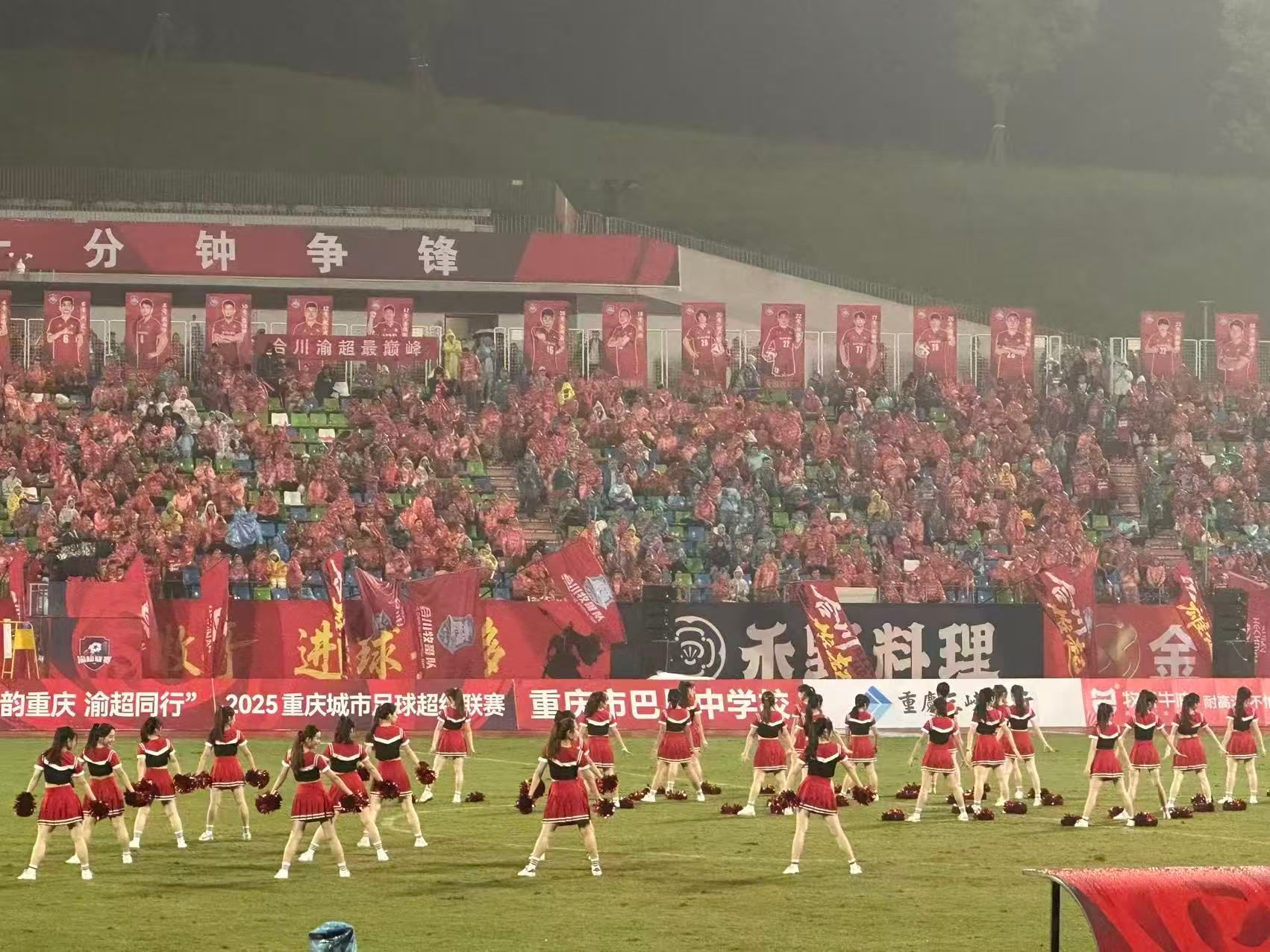 渝超的中场时光,一支队伍的身影伴随着音乐--她们踩着节拍而来,用笑容和跳跃,把赛场的热烈氛围拉到满格。队员们动作利落干脆,每一个队形变换都衔接丝滑。她们脸上的笑容彰显着属于青春的活力,感染并穿透赛场的每一个角落。