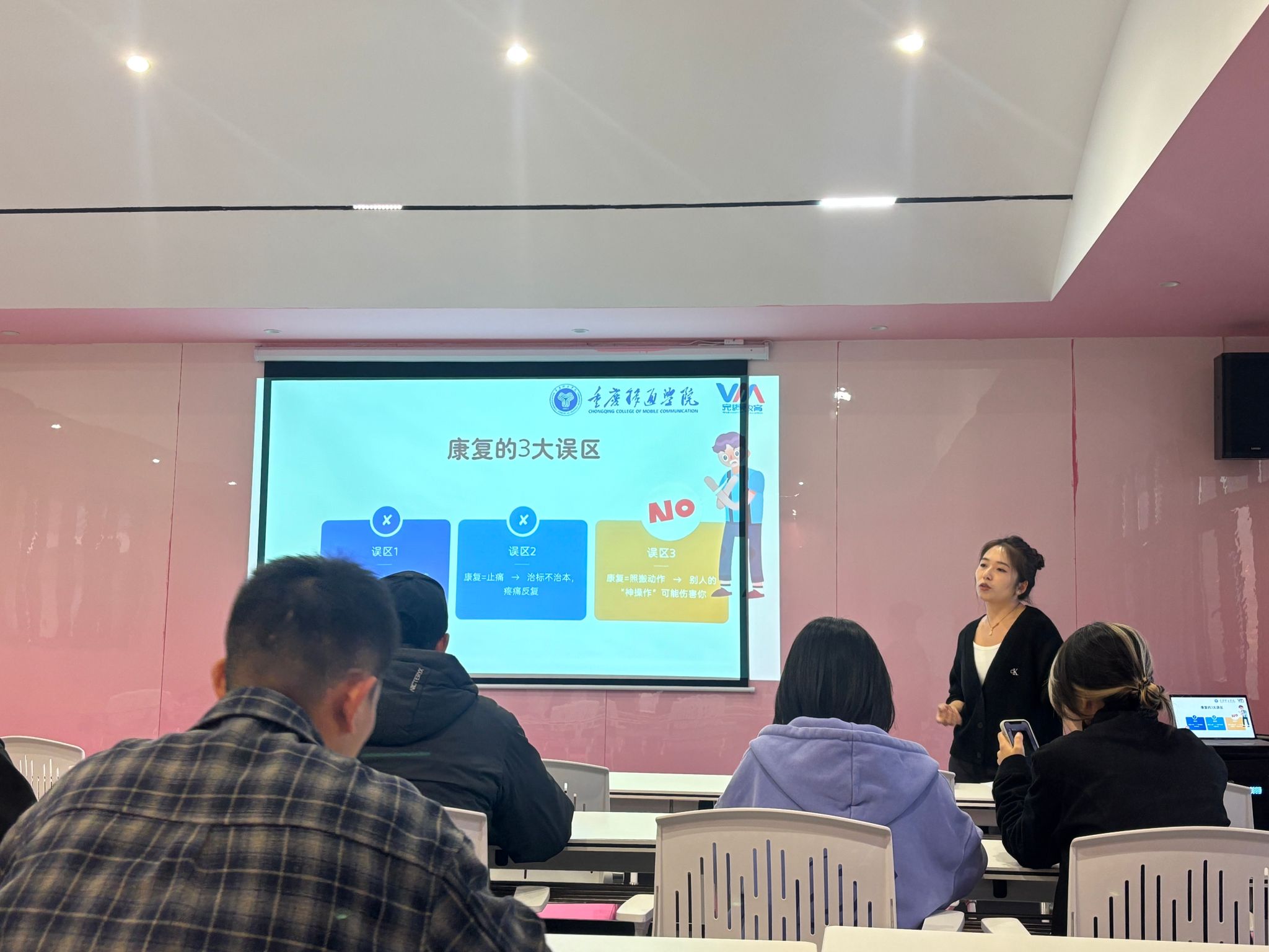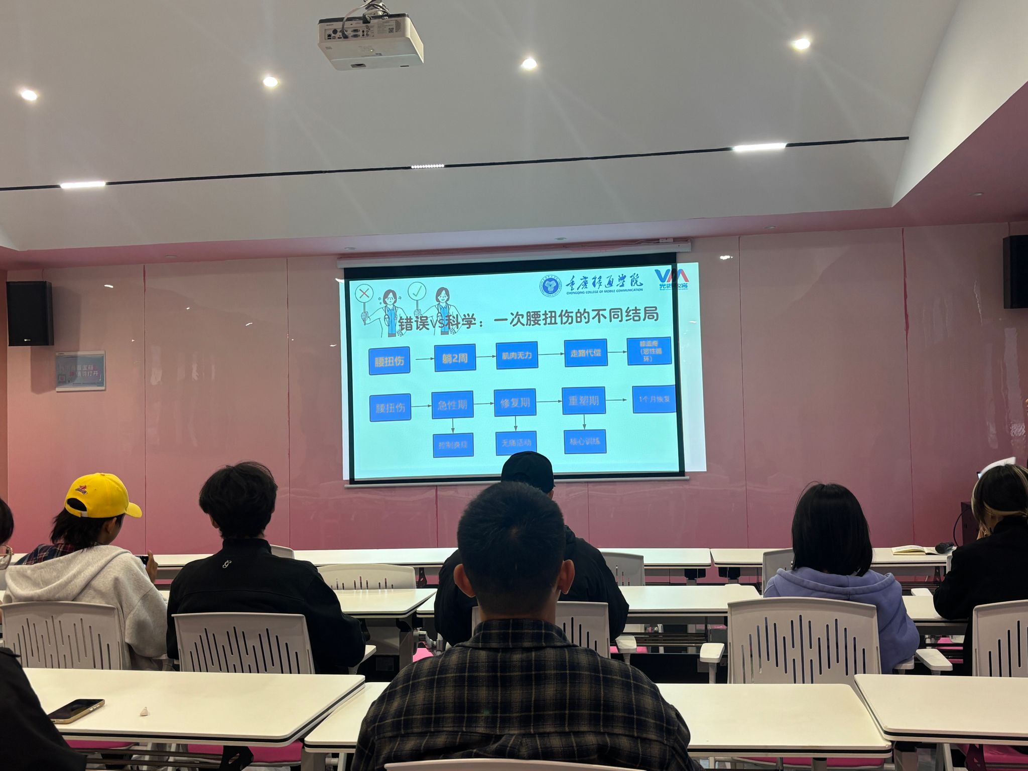 讲座伊始,齐乃琪教练以“腰扭后越躺越僵”“膝盖疼反复复发”“崴脚后成习惯性损伤”等师生常见的身体困扰为切入点,直指大众对运动康复的三大认知误区——“静养即康复”“不疼即痊愈”“跟练视频就有效”,用真实案例打破“康复离自己很远”的固有观念,瞬间引发全场共鸣。
