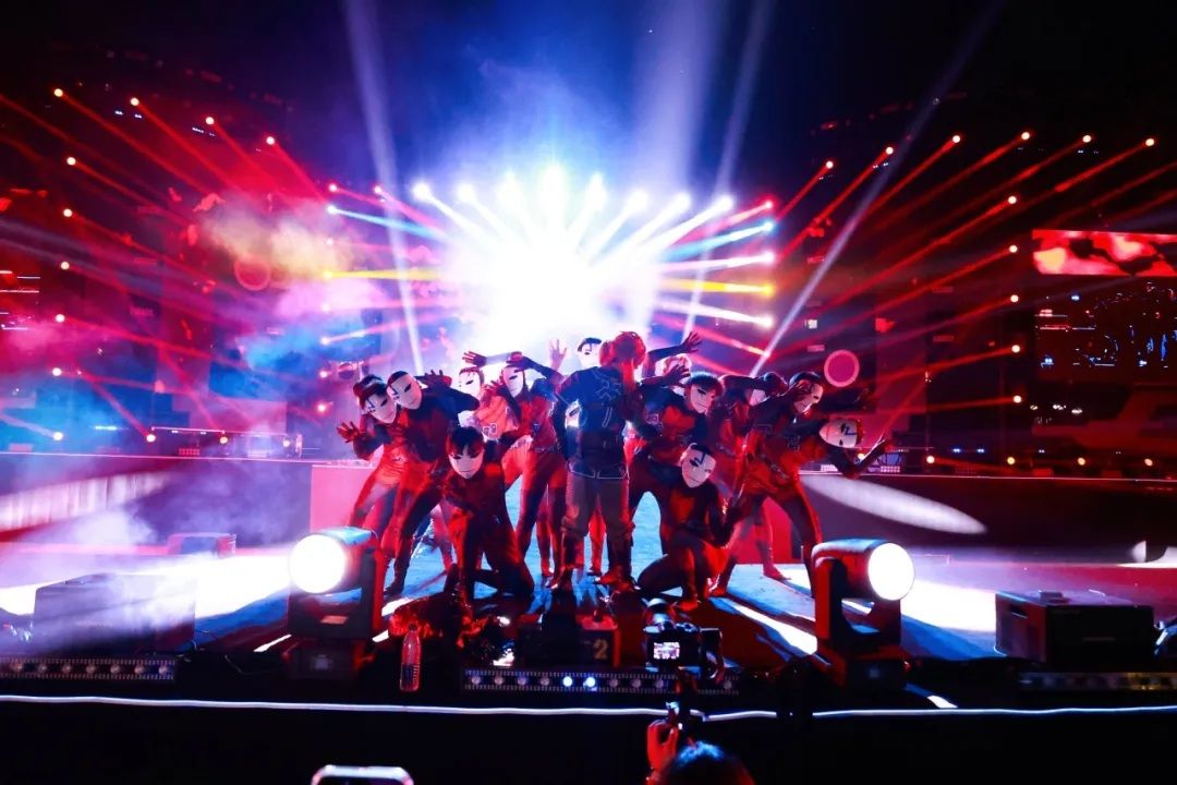 晚会内容本身就是一场关于价值的探讨。暖场的反诈视频、非遗喷火登台互动,点燃现场热情;K字女团空降“沙之国”活力唱跳掀起首波音浪风暴;怀旧F4组合演绎《流星雨》引发全场合唱;《黑神话:悟空》与《星球大战》达斯·维达展开跨次元对决。非遗与潮流、传统与现代、东方与西方、虚拟与现实的元素在此碰撞交融。当《宝可梦》《数码宝贝》《塞尔达》等承载集体记忆的IP形象登场,现场氛围达到高潮,或许记忆与爱才是勇士的力量。《孤勇者》歌声响起,国产动画代表作《哪吒》幕后制作和高燃片段,展现中国动漫团队与作品迈向新高度,激励每位学子做人生的“孤勇者”。