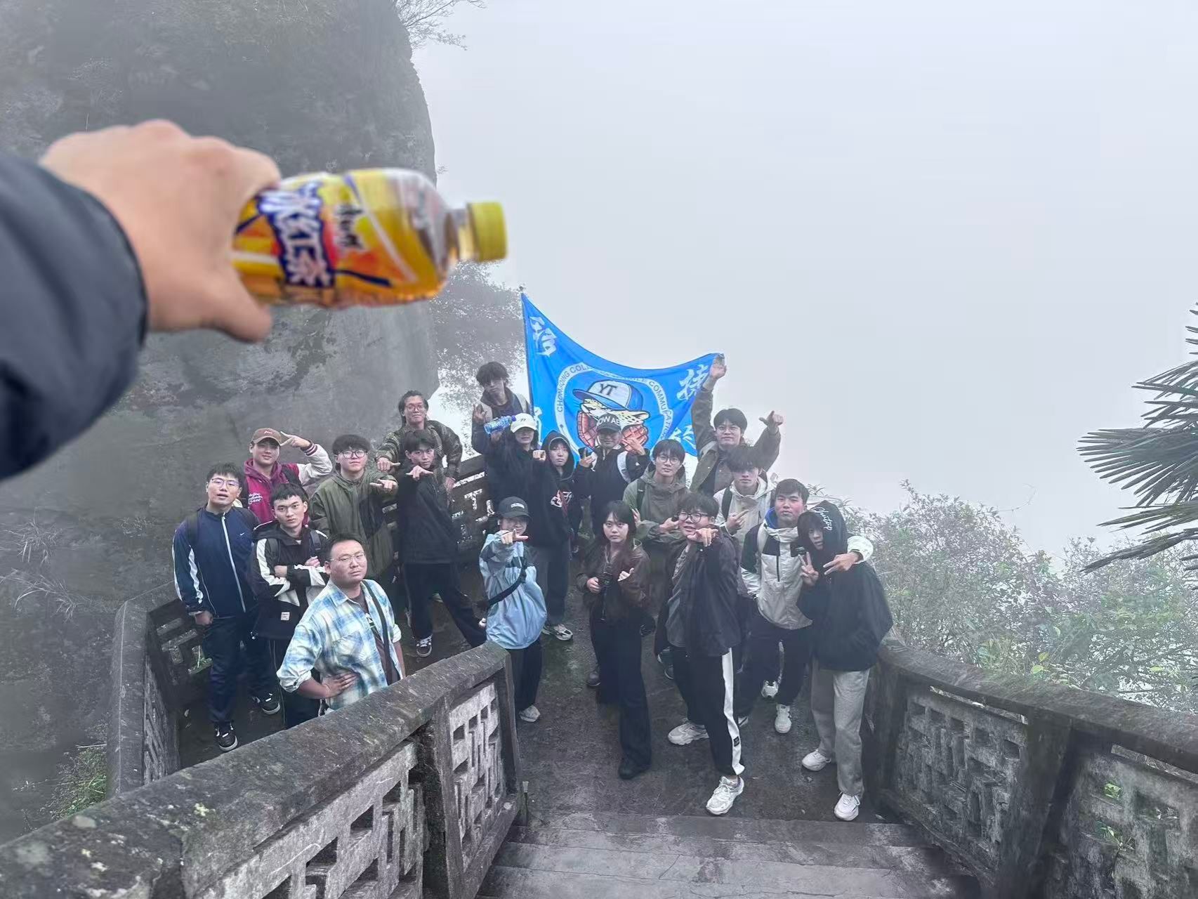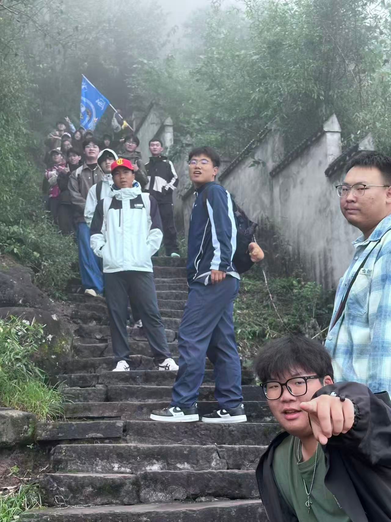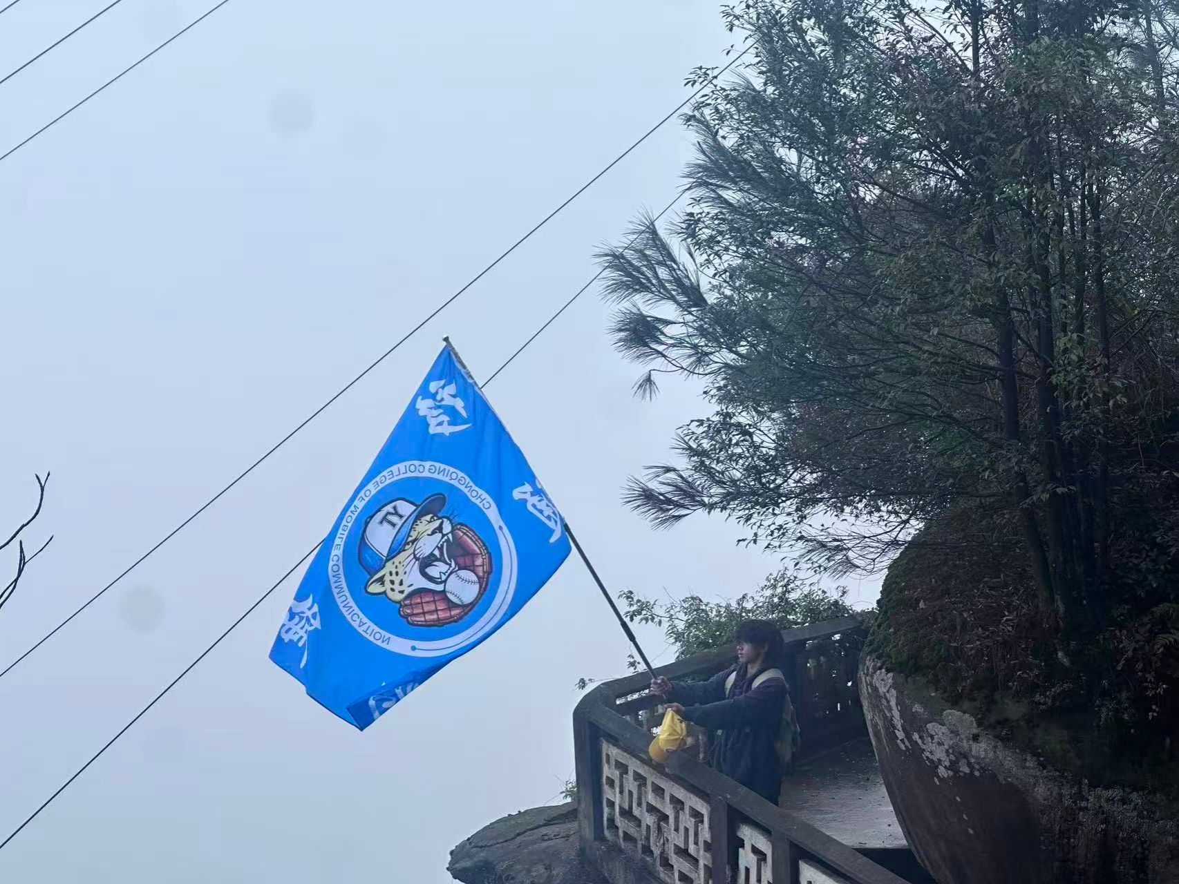 下午两点,刚经过了雨水的浸润,此时山间云雾缭绕,捷豹棒球队全体成员身着轻便服装,在白云观山脚下整齐列队。出发前,队员们高举队旗,齐声喊出“挑战自我,移通捷豹”的口号,镜头定格下一张充满朝气的合影——这张照片不仅记录了团队的凝聚力,更成为后续征程的精神图腾。