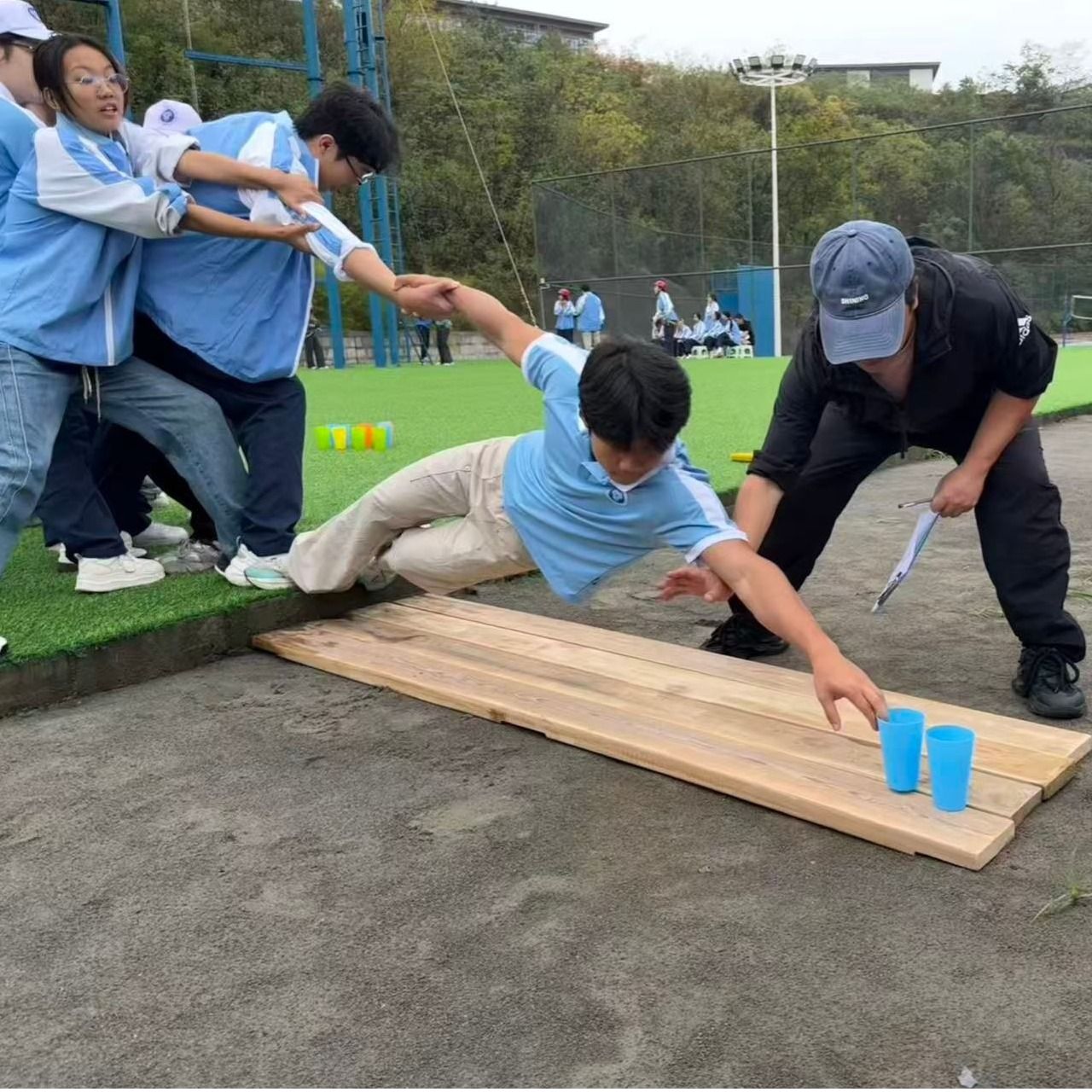 群龙取水:在限定条件下,小组成员分工明确、密切配合——有人充当人体支架稳固支撑,有人全力伸展突破限制,“信任”与“配合”成为成功的关键,每一次任务达成都离不开团队默契的支撑。
