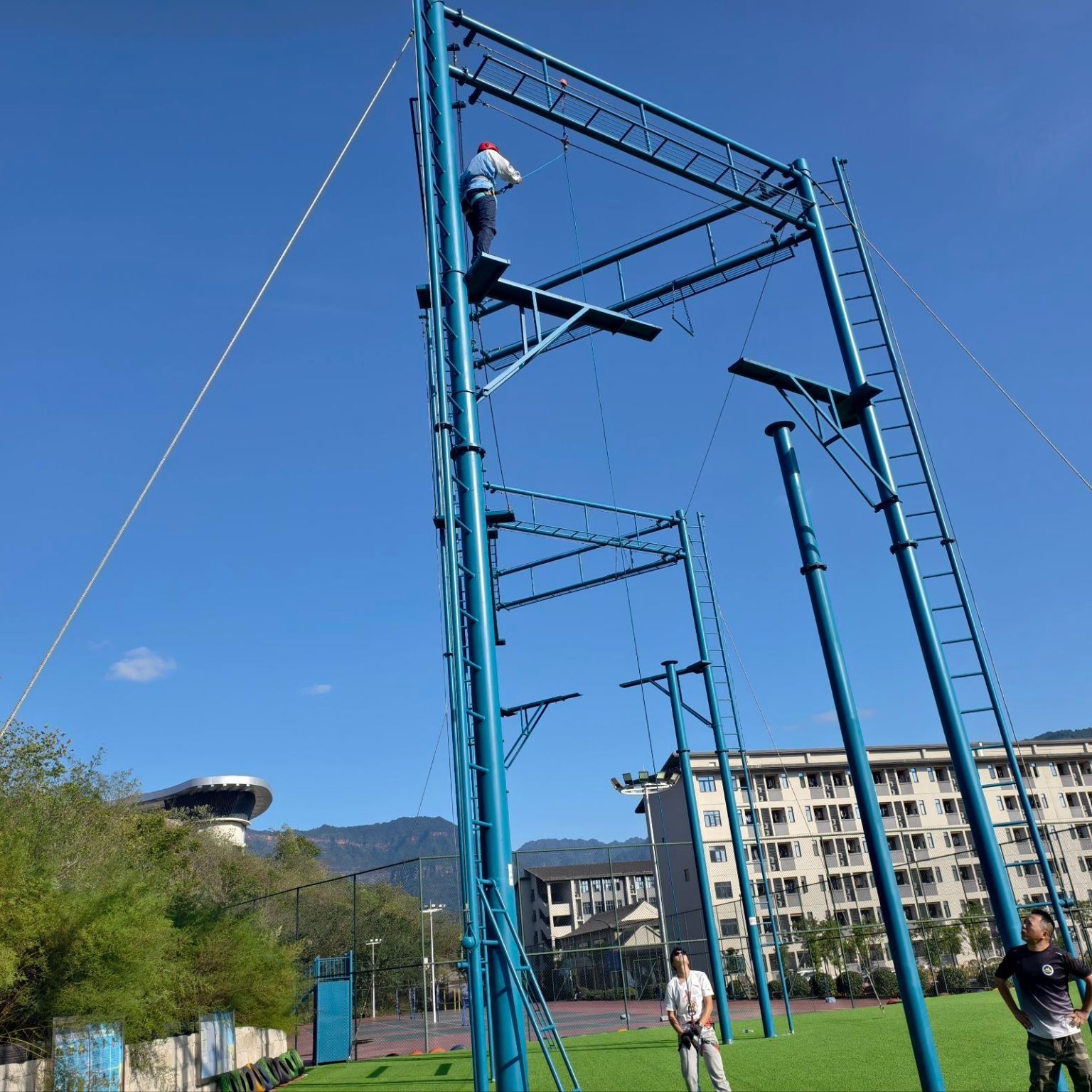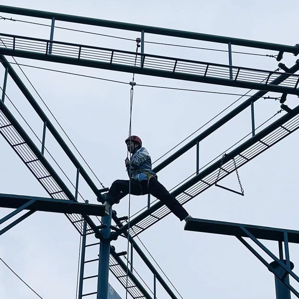 高空挑战项目:在教练专业指导与保护下,同学们从最初的紧张忐忑,到逐步克服恐惧、坚定迈出脚步,在高空中每一次的前行都是对勇气的淬炼,每一次自我突破都见证着成长。