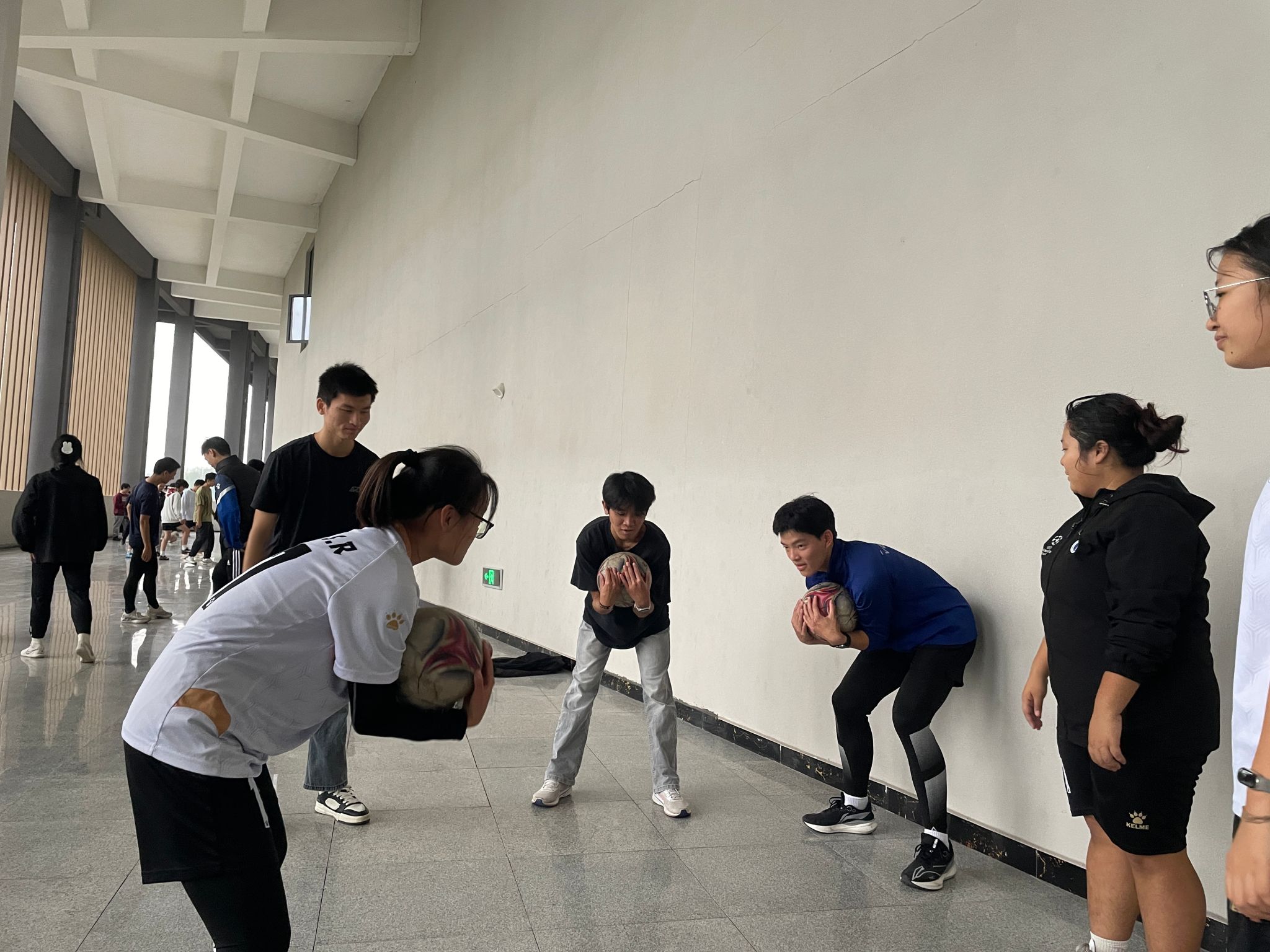 活动在下午16:00的欢声笑语中拉开帷幕,游泳馆外,大家通过 “数字抱团” 游戏快速破冰,队员们进行自我介绍简单熟络,18 名女足队员与25 名铁三队员便随机结对成为 “教学伙伴”,活动现场氛围热烈,充分体现出了队员们参与活动的积极性。