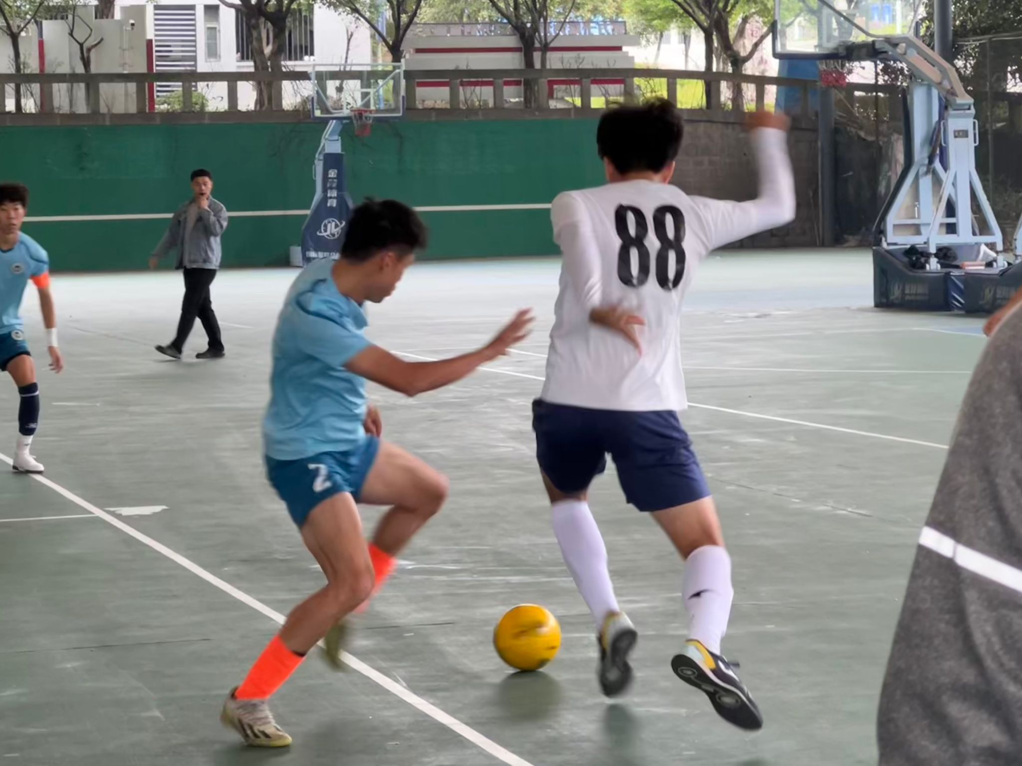10月26日中午,重庆移通学院风雨球场内热血沸腾,校男子足球队与重庆大学男足展开五人制足球交流赛,以实战打磨战术,为即将到来的五人制足球全国比赛蓄力。