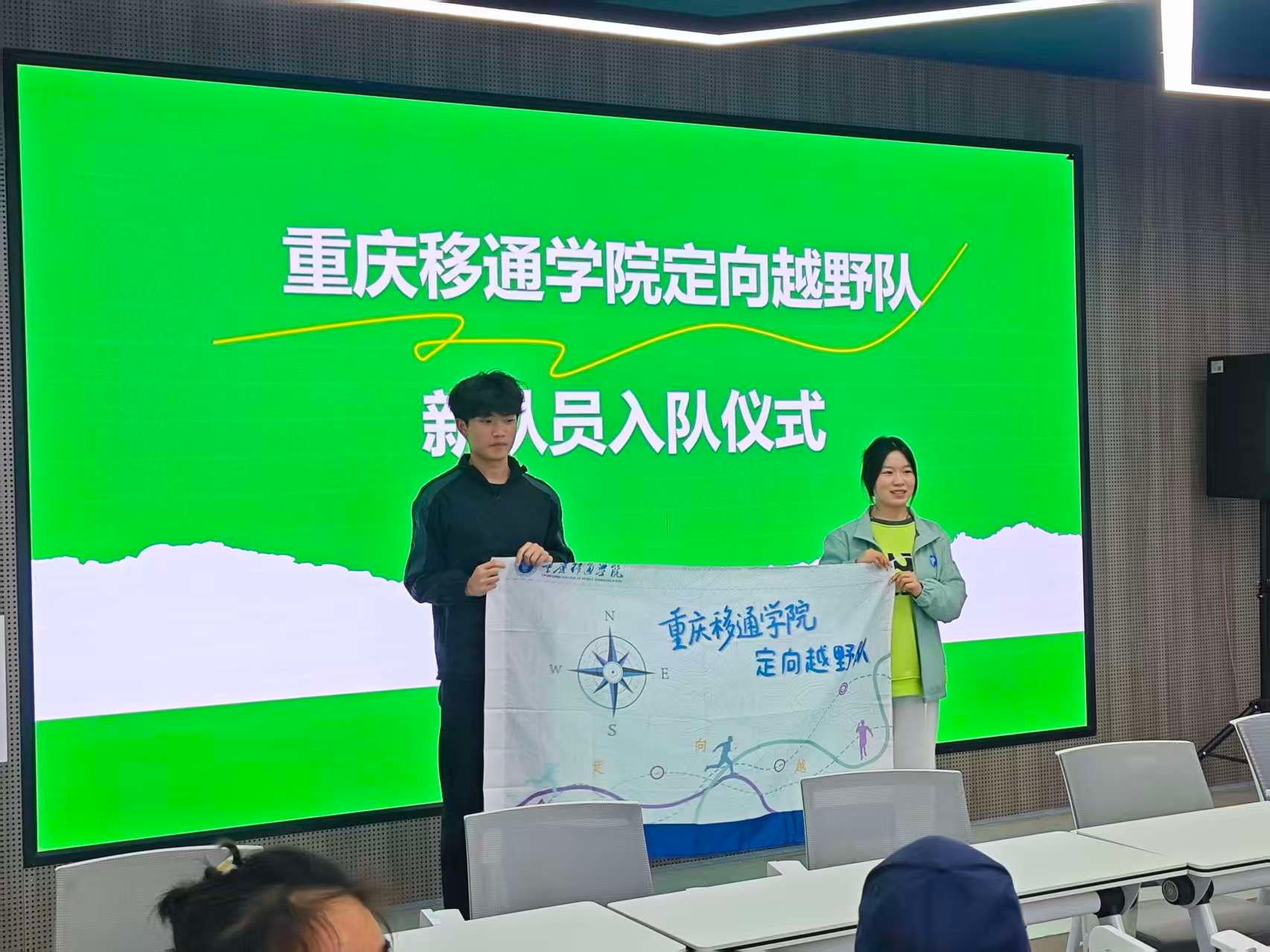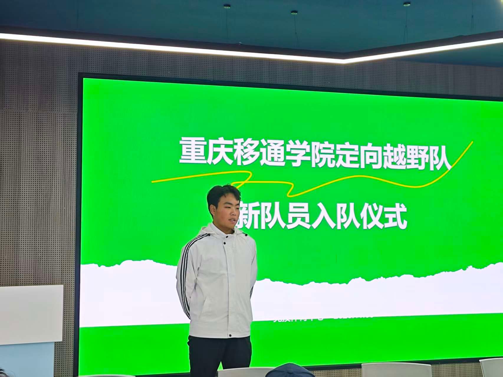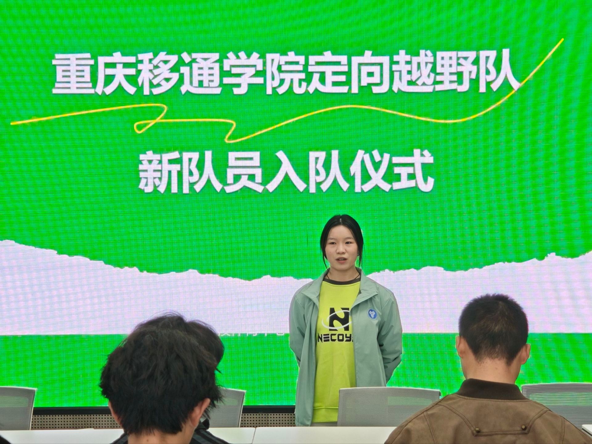 仪式下半场,新队员入队环节温情启幕。队长杨慧琴、温桐作为老队员代表,首先向新队员致以热烈欢迎。她们详细讲述了重庆移通学院定向越野队的发展历程——从成立初期的探索起步,到如今在各类赛事中崭露头角的成长轨迹,同时介绍了团队“拼搏、协作、坚持”的核心文化与日常训练安排。