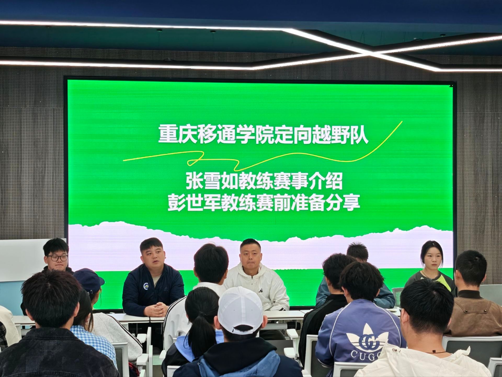 2025年11月3日下午,重庆移通学院定向越野队齐聚一堂,同步举行“全国青少年定向竞标赛”赛前动员会与新队员入队仪式。营地教育中心主任助理程光涛老师、训练队总负责人李华龙教练到场指导,带队教练张雪如、彭世军及全体队员参会,在凝心鼓劲儿中注入新鲜活力,为即将到来的赛事与团队新发展奠定坚实基础。