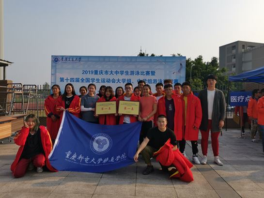 9月,在重庆市教委主办的“2019重庆市大学生游泳比赛暨第十四届全国学生运动会大学组游泳选拔赛”中。我校游泳队收获男子、女子甲组团体总分第一名的成绩蝉联冠军,并创造首个我校在省市级及以上大型体育竞赛的四连冠。一直以来,学校高度重视游泳项目发展。注重水平提高,聘请专业高水平教练(罗聪、黎曼琳、王钰涵)进行发展指导;注重硬件保障,修建恒温游泳池和室外标准池各一座;注重推广普及,将游泳课程纳入体育必修课。