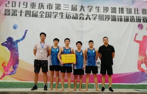 2019年,在重庆市教育委员会主办的“第十四届全国学生运动会大学组沙滩排球选拔赛”(6月)和“重庆市第六届普通高校体育教师排球比赛”(11月)中。我校师生收获优异成绩:我校排球队在重庆大学等17所高校的28支参赛队伍中获得男子甲组第四名和女子甲组第八名,并获评体育道德风尚奖;我校竞技体育中心教师组成的代表队在全市23支高校代表队中脱颖而出,收获二等奖。