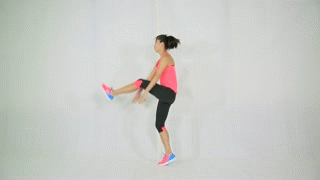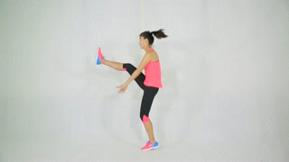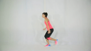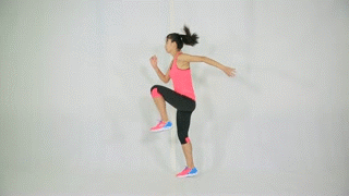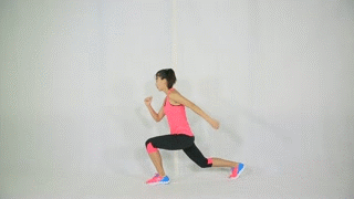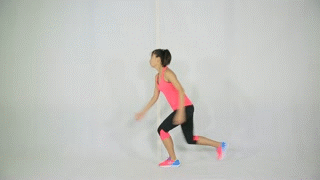 右腿弓箭步接高抬腿跳起