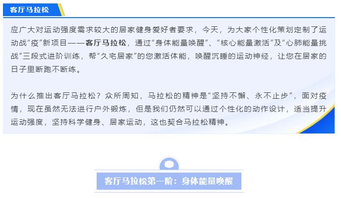 客厅马拉松第一阶段围绕室内力量训练展开,通过在客厅就可以完成动作,来唤醒身体的能量。