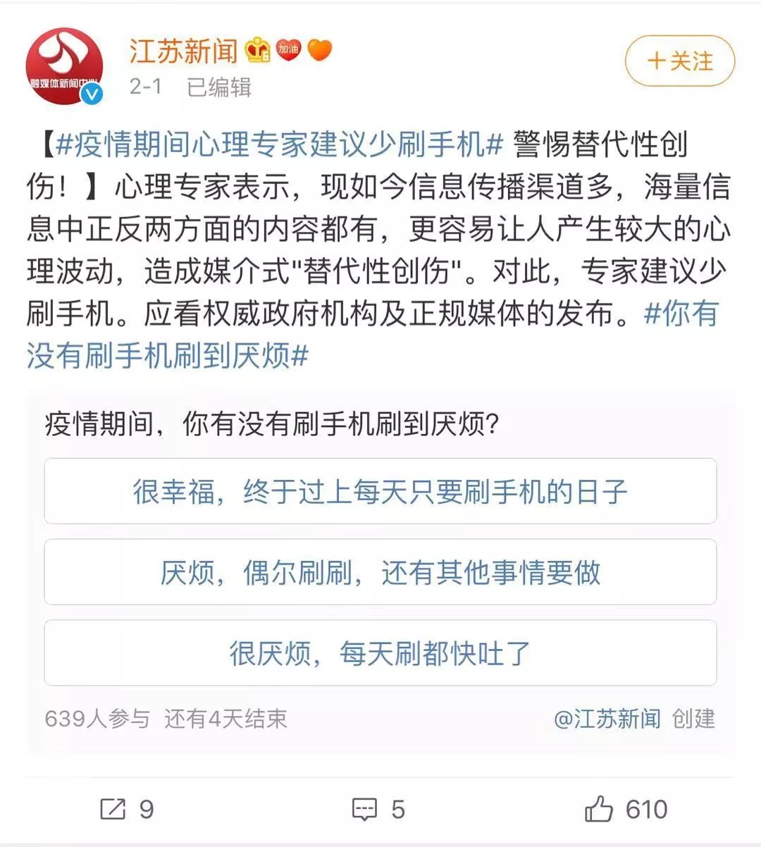 最近大家刷微博,看到每天的疫情通报、一线医护人员的日夜坚守、成千增长的病例数量,纷纷表示担心、焦虑、害怕,因此“替代性创伤”就上了热搜。很多读者会好奇:什么是“替代性创伤”?为此,小体专门查阅了资料,为大家解读: