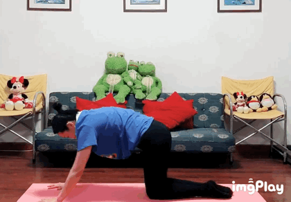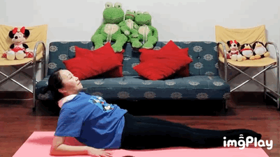 动作说明:膝关节弯曲触地,同时肘关节或双手触地支撑,1-2拍右腿直腿向身体后上方踢腿,3-4拍还原,5-8拍左腿动作同1-4拍。