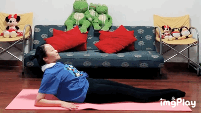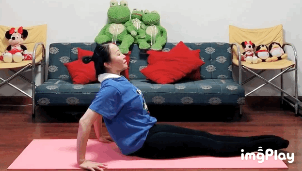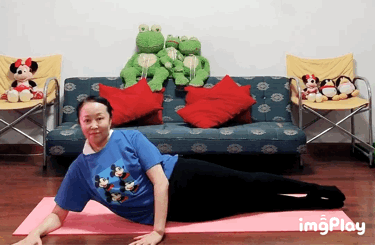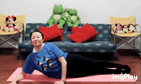 动作说明:第1-8拍身体前屈,双手触脚尖;第2-8拍成直角坐,同时肘关节触地支撑地面。