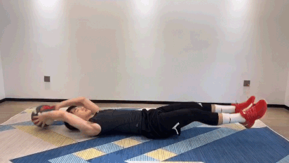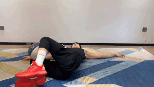 要求:平躺双手打开,屈膝夹球做来回钟摆动作,做动作时肩膀不离地。
