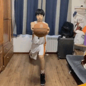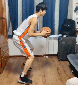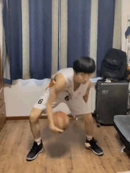 要求:沿着膝下8字绕环连续快速左右手交接球。要求保持速度,绕环中球不要碰到自己的腿。绕环速度越快,动作难度越大。