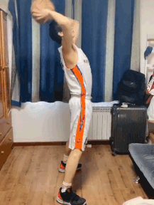 要求:单脚站立,双手持球向上伸直,悬空腿做原地弓步抬起后向后缓慢伸直,同时手臂伸直从上往下移动,直至手臂、躯干和腿形成一条直线,保持2到3秒再缓慢还原。