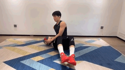 2、双手持球上下腹背拉伸