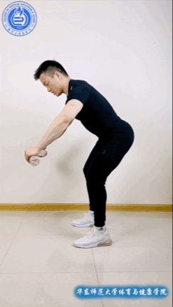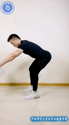 臀部往后,前面小腿垂直地面,上身重心前移,也可以下蹲时增加转体或使用瓶装矿泉水增加负荷。