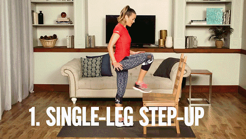 注意:用来运动的椅子,材质和四个脚要够耐重和平稳,运动过程中最好让椅子靠墙、增加稳定性,最好在椅子下方加一块瑜伽垫,不会滑动之后再去做运动,椅子的高度不要超过膝盖,否则会增加困难度与关节的压力。